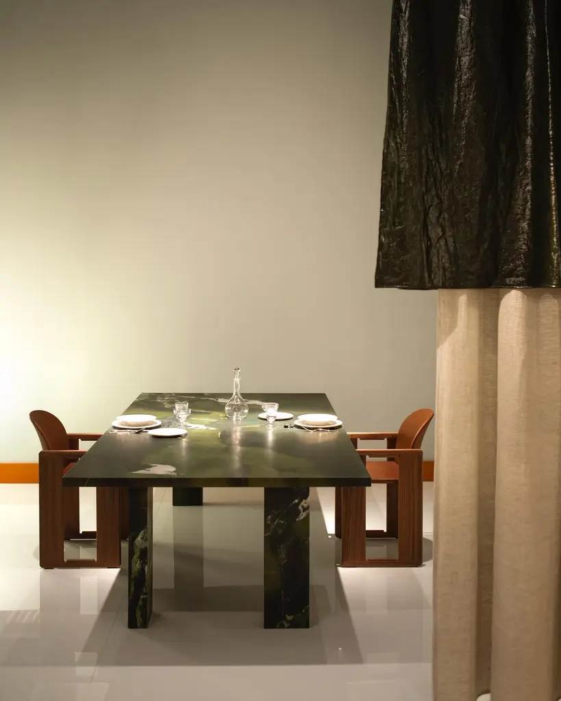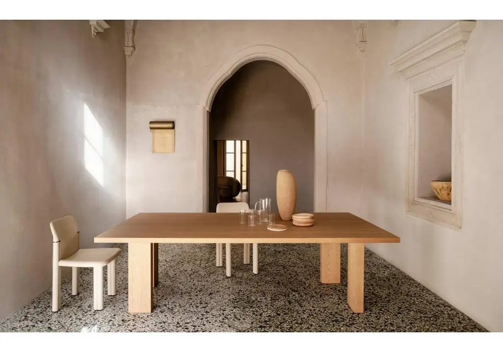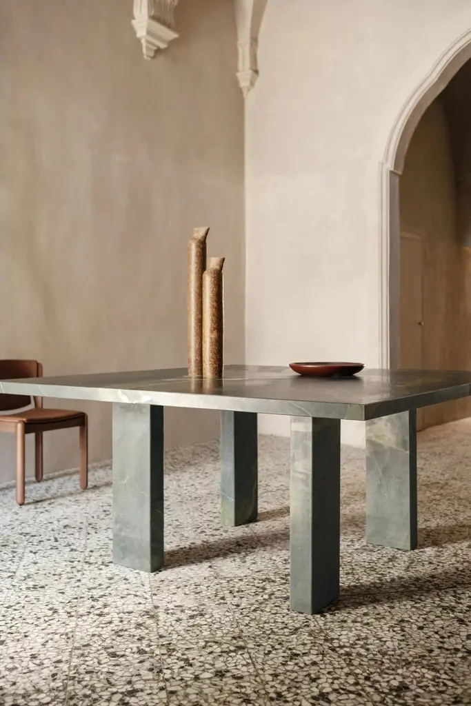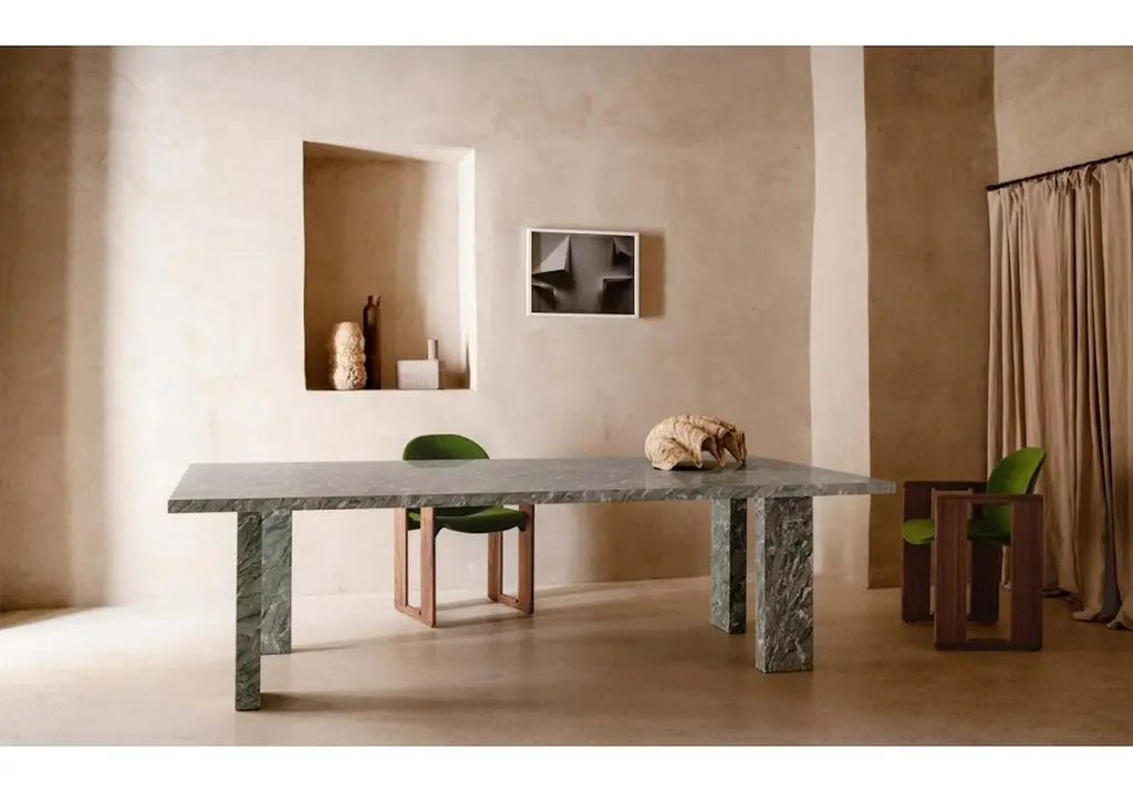 Simple and monumental, Clockwise reveals its subtle humour only to those who manage to grasp the play of steps that define the position of the legs and the alternation of their positioning in the corners of the top. Born from the first collaboration between Tacchini and designer Michael Anastassiades, it is a table with an important presence, which at the same time evokes a sense of lightness in the legs that chase each other almost dancing, rotating around a choreography that suggests the right dance steps to experience it fully. At different rhythms, following the metaphor of a gesture, the movements and activities that take place around the table can thus be told from time to time unexpectedly, as fluid and informal as the environments in which the table itself can be placed.