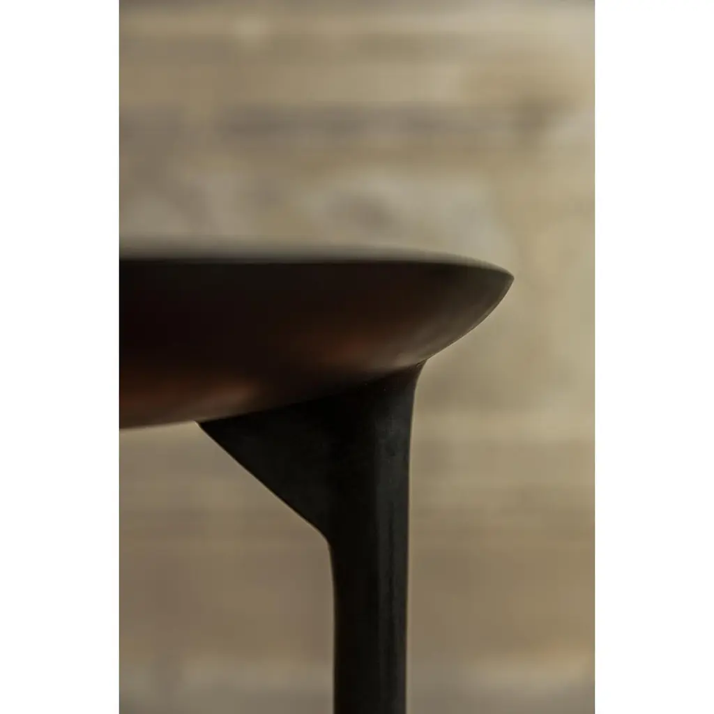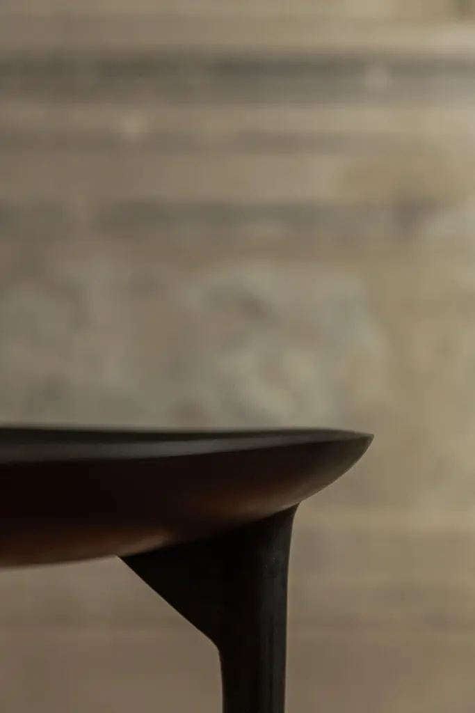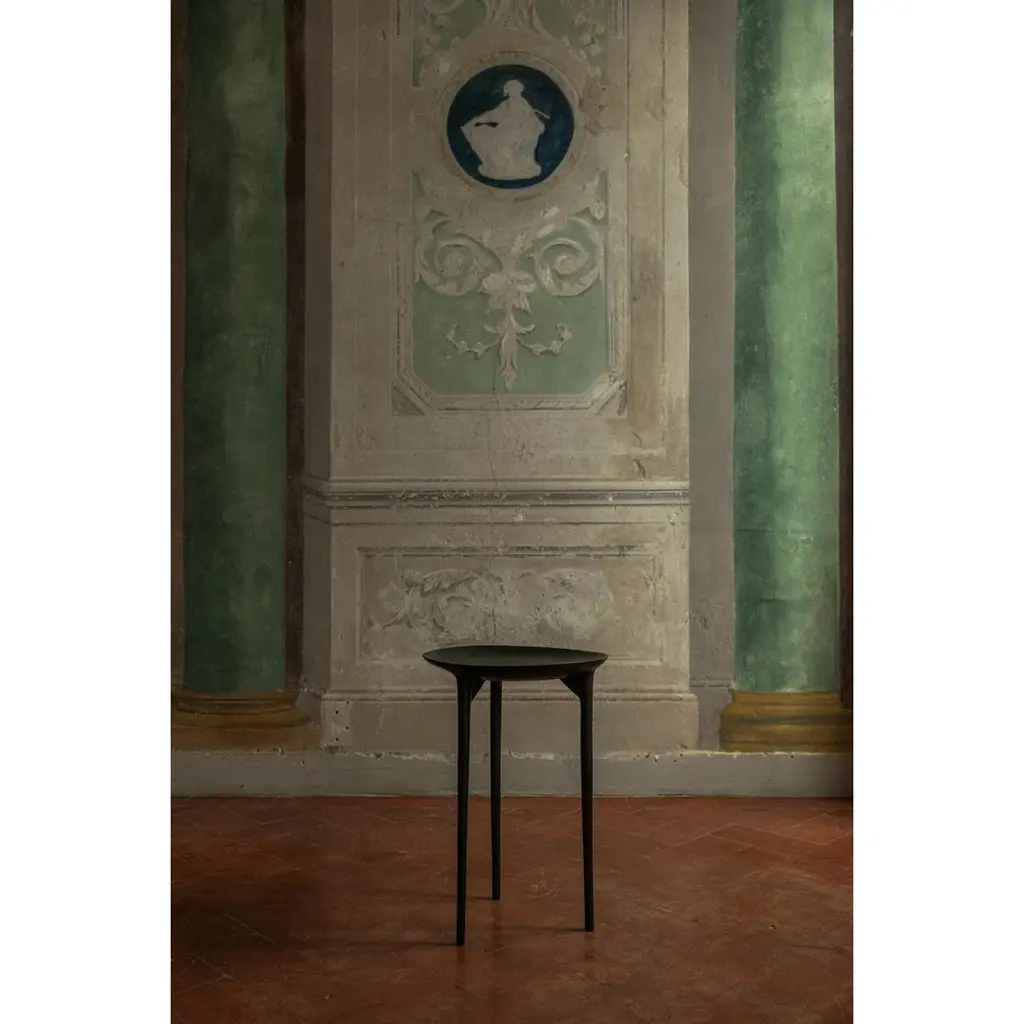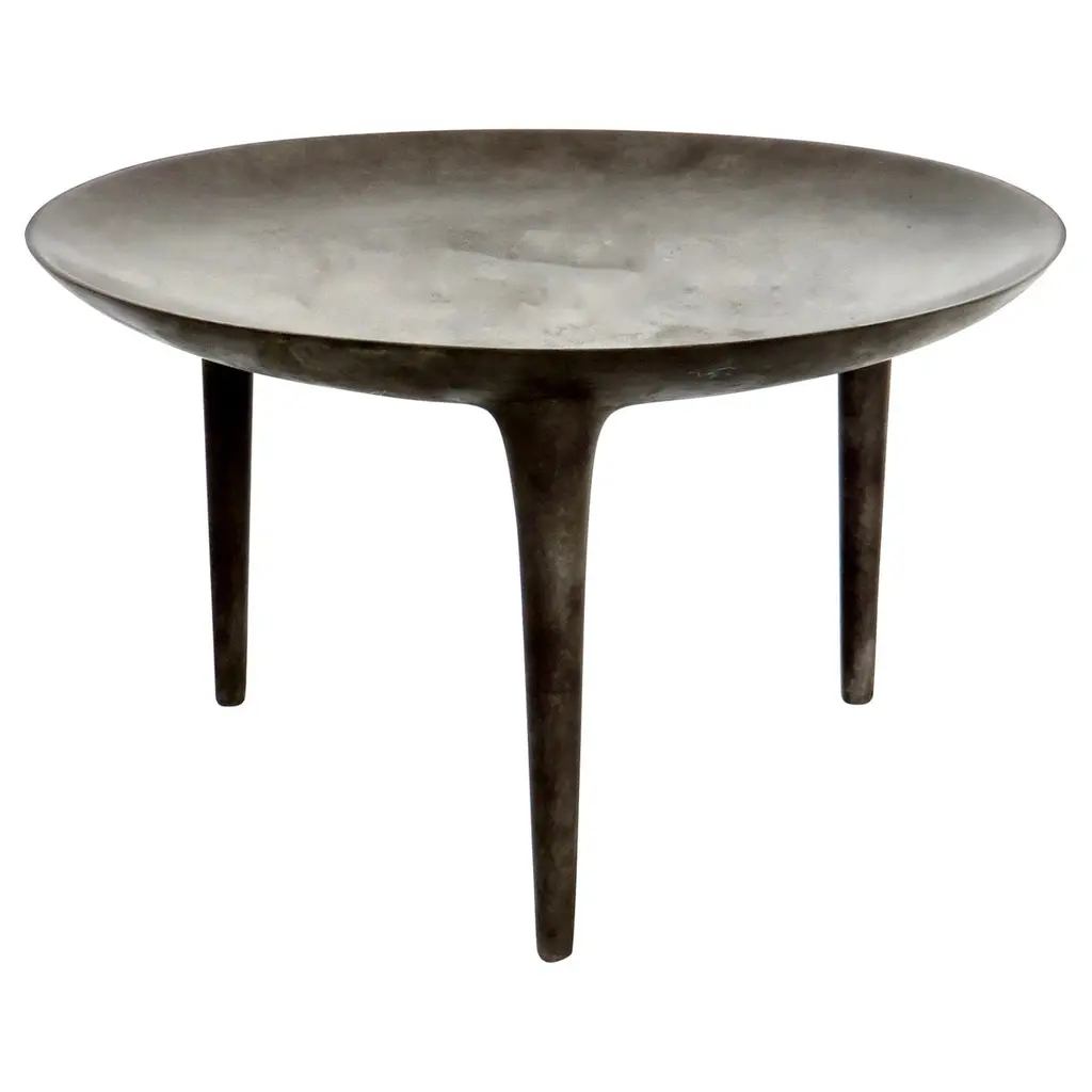 Tall brazier table by Rick Owens2007Dimensions: L 42 x W 42 x H 59 cm.Materials: BronzeWeight: 25 kgAvailable in black finish or nitrate (dark brown) finish.Rick Owens is a California-born fashion and furniture has developed a unique style that he describes as “luxe minimalism.”Though his designs are simple and spare, Owens thrives on theatricality - producing wildly original runway shows featuring gender-fluid models of all ages and shapes. Inspired by his longtime partner and muse, Michele Lamy, clothes and furniture alike feature dark grays, blacks and browns. Like his frontier forebears, Owens finds his strongest influences in nature - his furniture and housewares have simple, organic shapes, and a few items even feature his distinctly 21st century take on antlers.
