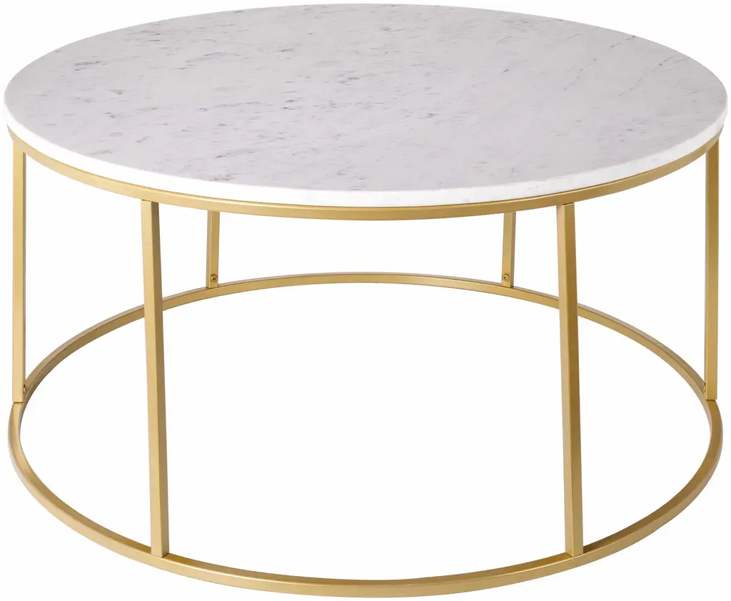 Taminango White Marble Gold Frame Coffee Table - 18"h X 36"w X 36"d