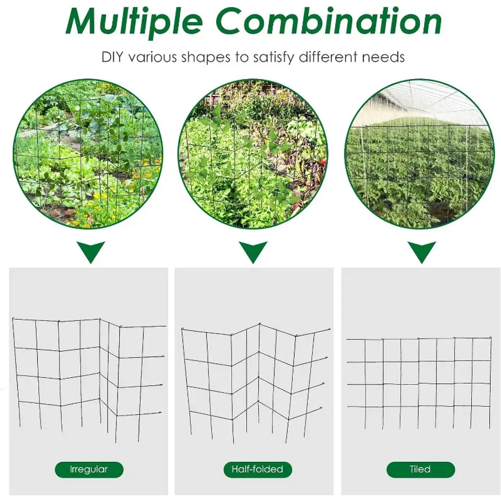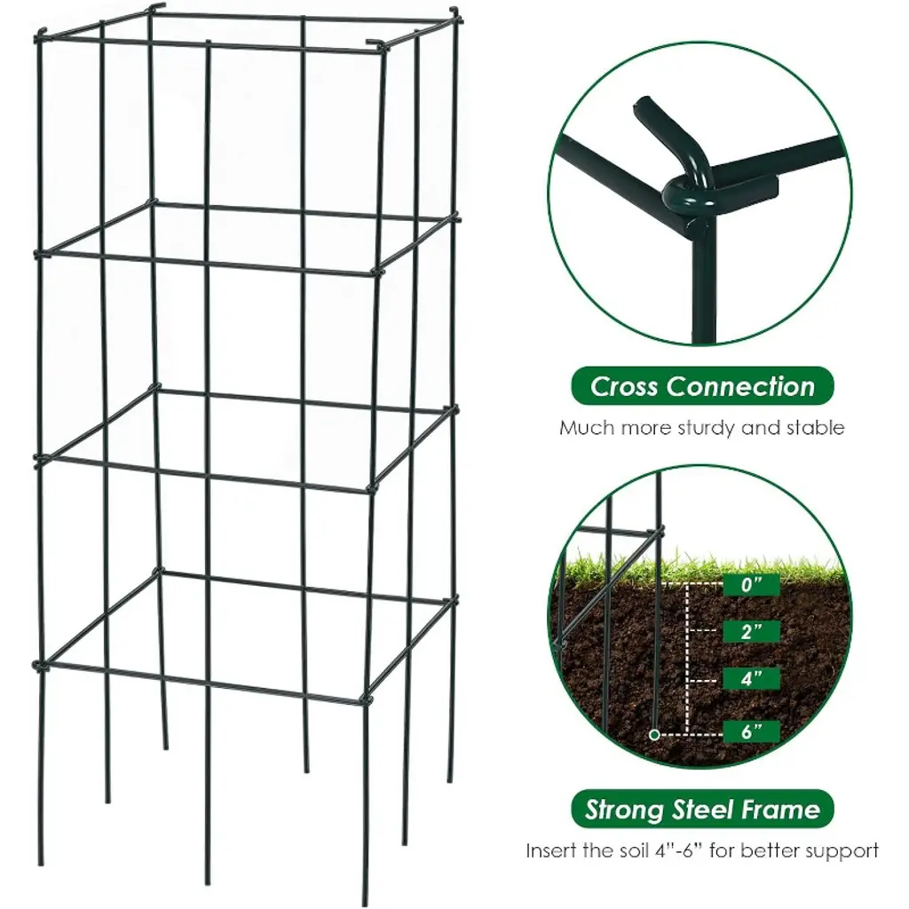 Create your own charming garden with our 8 pack tomato cages! Measuring 16’’W x 39’’H, our plant cages are ideal for growing climbing fruits and vegetables like grapes, cucumbers, and tomatoes. The dark green color enhances your garden’s aesthetics, and the foldable design allows for flexible configurations such as enclosing, half-expanded, and fully expended. Moreover, the iron frames with a painted surface ensure durable plant support, preventing bending and rusting. Lightweight at 3 pounds, each collapsible cage is easy to transport and store, featuring a straightforward assembly with staggered locking designs for effortless connection and fitting into different pots or soil depths of 4’’-6’’.FeaturesDifferent combinations to choose from: enclosing, half-expanded and fully expended Iron frame with a painted surface ensures sturdy plant support Lightweight design makes moving and storing easySpecifications:Color: Dark Green Material: Iron Dimension: 16" x 16" x 39" (L x W x H) Net Weight of Each Cage: 3 lbs Package includes: 8 x Tomato Cages