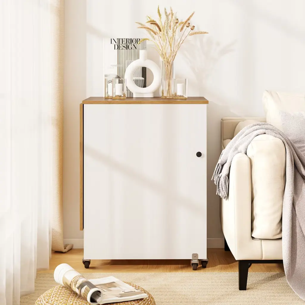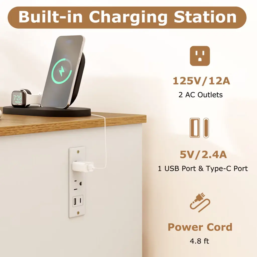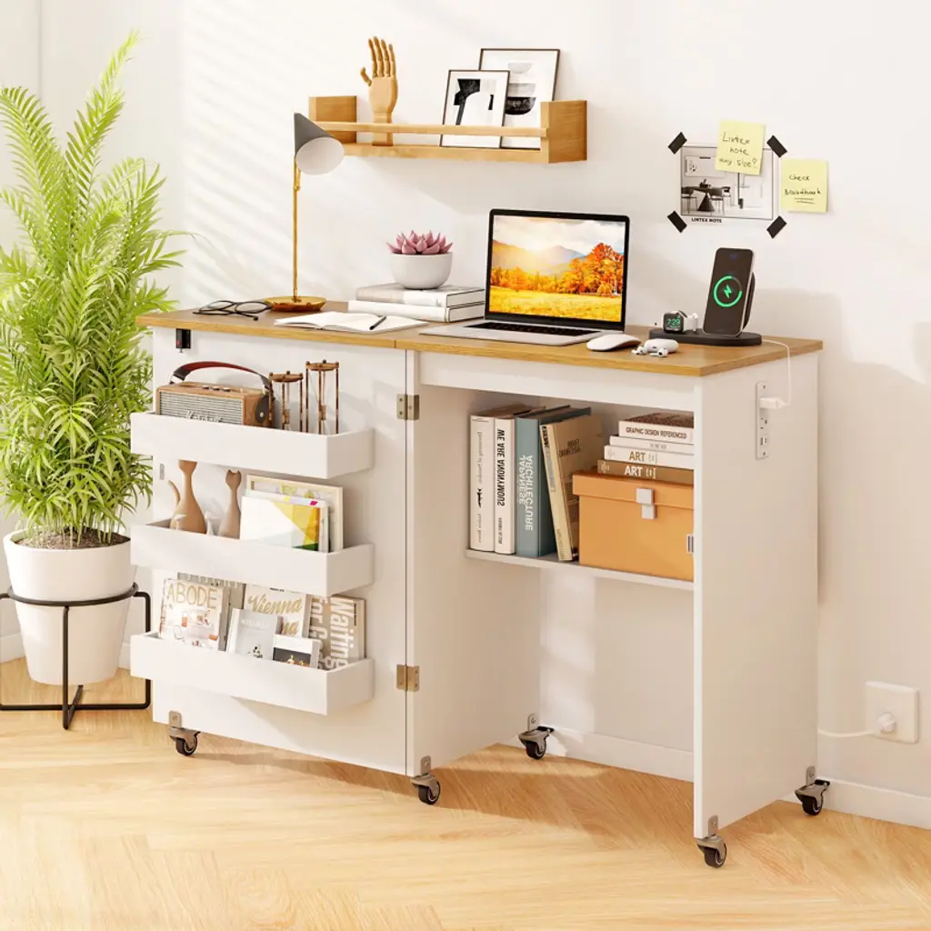 Make your sewing art even more perfect with this folding sewing desk! Equipped with a built-in charging station offering various charging options, the sewing cabinet provides ample storage space with tabletop, storage shelf and open rack. The expandable and foldable crafting table features a convenient round handle for easy transitions between its unfolded and compact states. With 5 smooth swivel casters, including 3 lockable for stability, this versatile sewing desk ensures easy mobility and quick folding, making it perfect for use as a side table, study table or computer desk.FeaturesMultifunctional folding design serves as a sewing table, side table and computer deskCarefully designed handle and spring latch make folding smootherKeep necessary belongings in perfect order with 3-tier shelf, open rack and tabletopAchieve easy mobility and secure braking with 5 smooth swivel casters (3 lockable)Built-in charging station offers 2 AC outlets, a USB and Type-C port4.8 ft power cord allows for flexible placement optionsSafety is a priority with included anti-collision padsVersatile designs suitable for home, studio and study roomSpecifications: Color: Brown/Natural/White & Natural/White Material: Engineered Wood, Metal Overall Dimensions: 45.5" x 16" x 31"/116 x 41 x 78 cm (L x W x H) Folded Dimensions: 23" x 16" x 31"/58.5 x 41 x 78 cm (L x W x H) Dimensions of Tray: 14.5" x 4.5" x 2"/37 x 11.5 x 5 cm (W x D x H) Dimensions of Open Shelf: 21" x 8.5" x 16"/53 x 22 x 40 cm (L x W x H) Power Cord Length: 4.8 ft/145 cm AC Outlet: 125V/12A USB + Type-C: 5V/2.4A Weight Capacity of Fixed Tabletop: 45 lbs/20 kg Weight Capacity of Folding Part: 45 lbs/20 kg Weight Capacity of Shelf: 22 lbs/10 kg Net Weight: 43 lbs/19.5 kg Package Includes: 1 x Folding Sewing Table with Power Strip 1 x User Manual