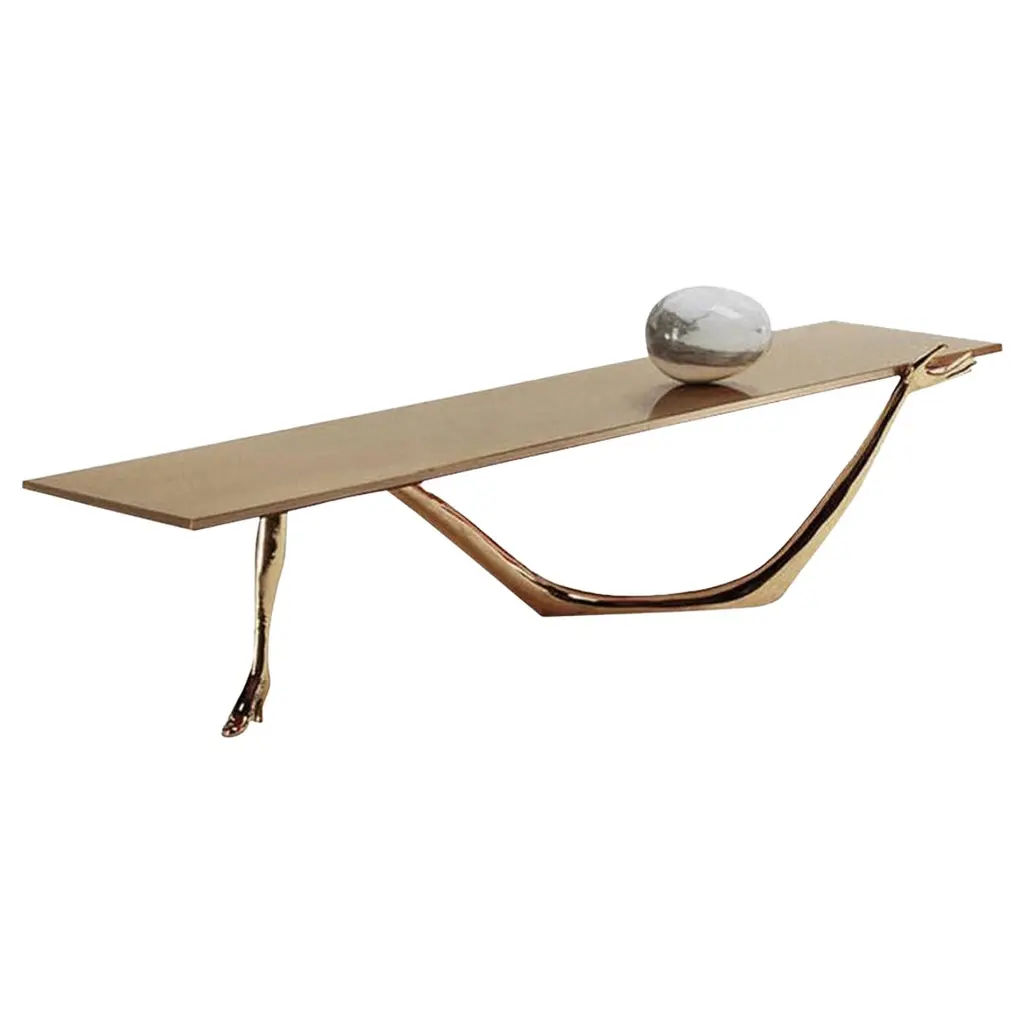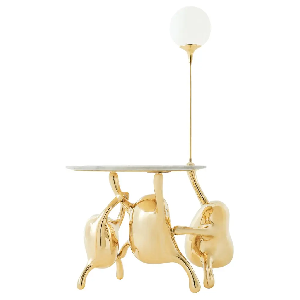 The TanTan side table can also be used as a nightstand or an accent piece in the interior. It is handmade by renowned Chinese artist Zhipeng Tan and can be customized in size and color.About the artist:Since graduating with an Industrial Design degree from the China Academy of Art in Hangzhou, Zhipeng Tan has focused on the ancient technique of lost-wax casting. Through this foundry process, rich in heritage and tradition, Tan explores his interest in organic forms. Often inspired by his environmental surroundings, such as water and plants, he explores anthropomorphic themes, as well. Though trained as an Industrial designer, he has become an accomplished self-taught sculptor, eagerly exploring the elastic and permeable boundaries between art and design and finding a harmonious fusion of sculpture and furniture, provocative objects of both beauty and utility.In spite of his rigorous training in computer modeling, Tan develops all of his concepts exclusively with hand drawing, preferring the direct connection to his work that sketching provides. As he likes to say, “Every line in the artwork is touched by me.” Most of his work is hand-sculpted in clay, and the final work is achieved through casting, hammering, welding and polishing. He has chosen brass as his preferred medium in part because of its connection to historical tradition, but most especially because of its warm color, rich luster and versatility. Though from his early work, one may sense the influence of Joan Miró, Henry Moore and Constantin Brancusi, and in his more recent pieces there is a nod to the Post-Pop sensibilities of Jeff Koons and Takashi Murakami, the work of Zhipeng Tan is thoroughly original, an expression of his exuberance and imagination. In all of his work, one may see an exploration of our fundamental humanity and a desire to discover worlds within worlds. From the 33 Step Chair, composed of a sculpture of an inverted human spine, to the Lotus series of tables and chairs, inspired by the structures of plants, to the TanTan series, depicting the characters from his imaginary utopian world of extraterrestrial adventurers, there is a deep and vital questing to connect the imaginary and the tangible worlds.