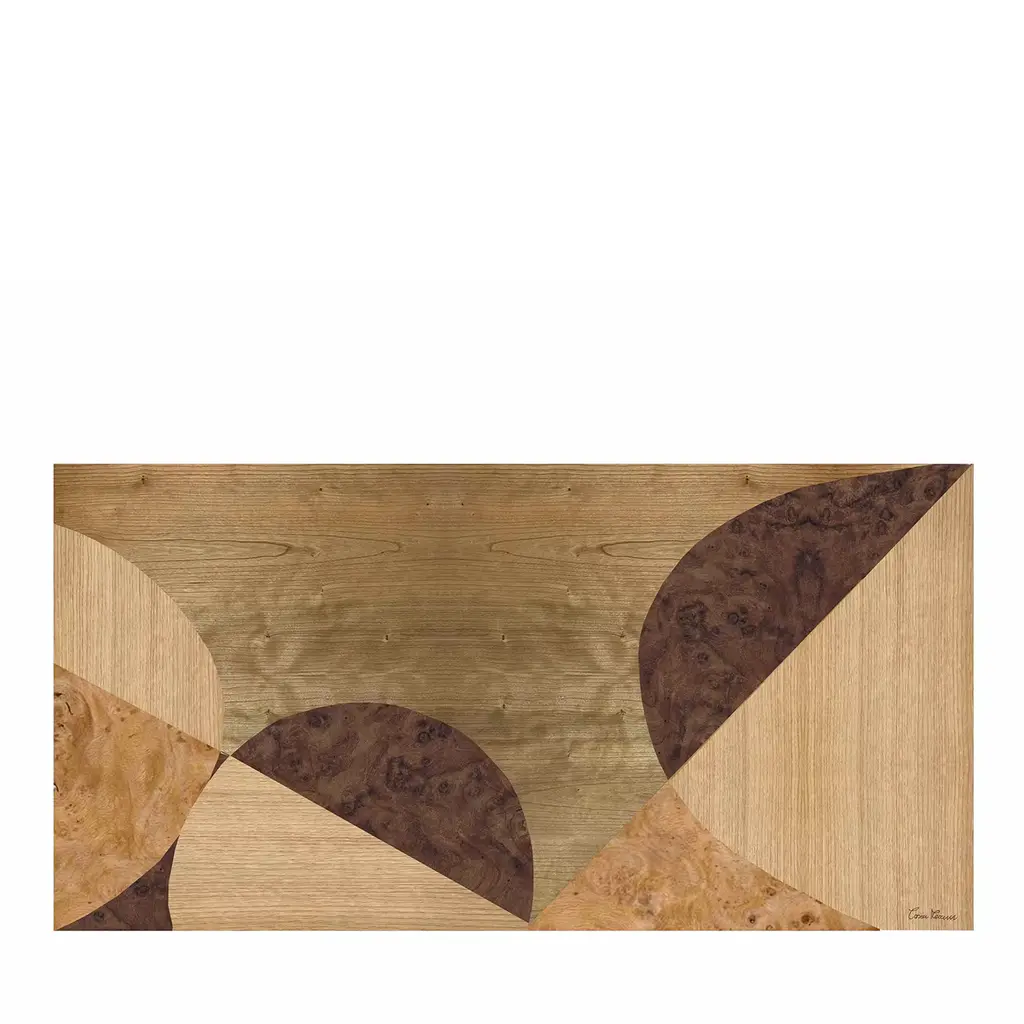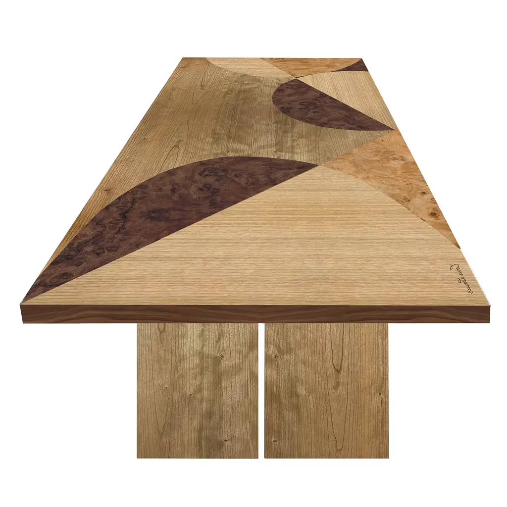 Elementary profiles enlivened by unique and captivating handmade marquetries hinting at Cubism define this one-of-a-kind handcrafted table. Part of an exclusive series inspired by ancient monastery furniture, each piece is made to last and share special moments with family and friends. The piece comes signed and with the date impressed on a label.