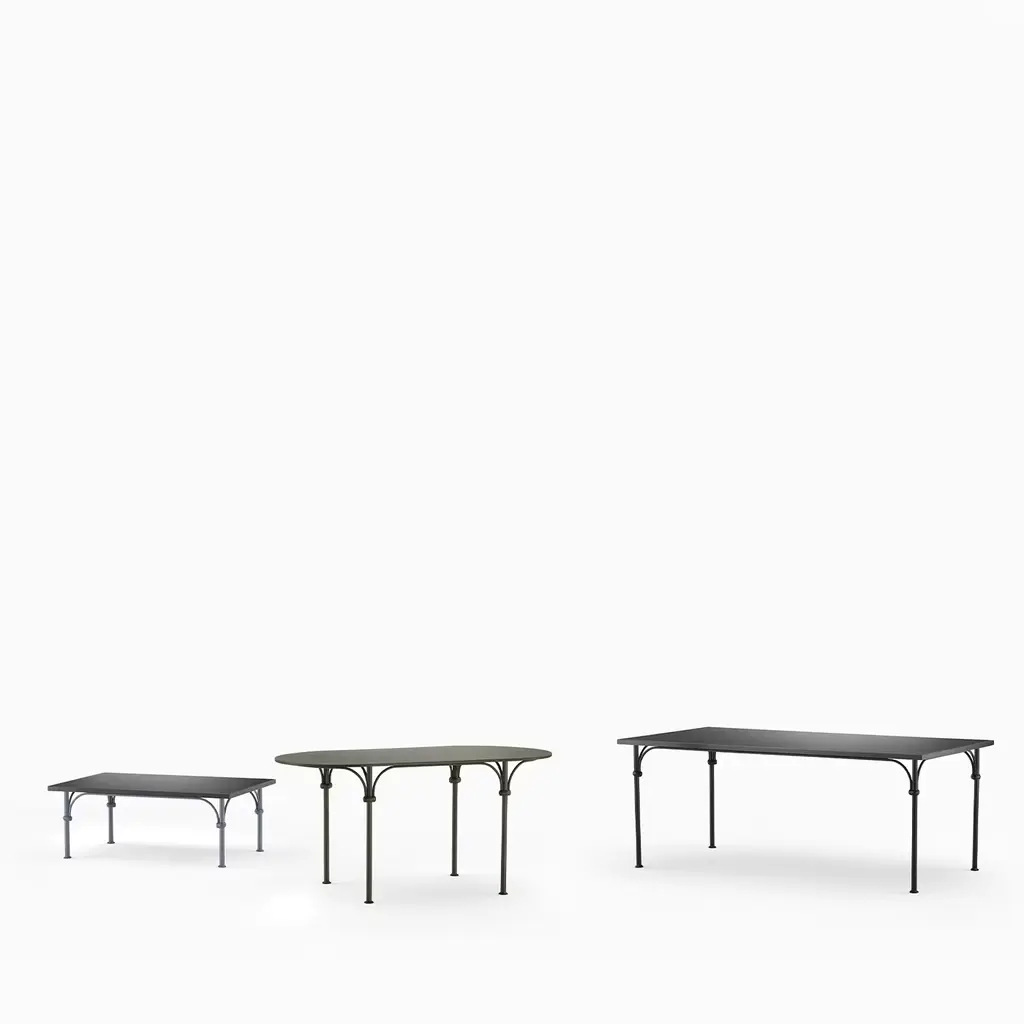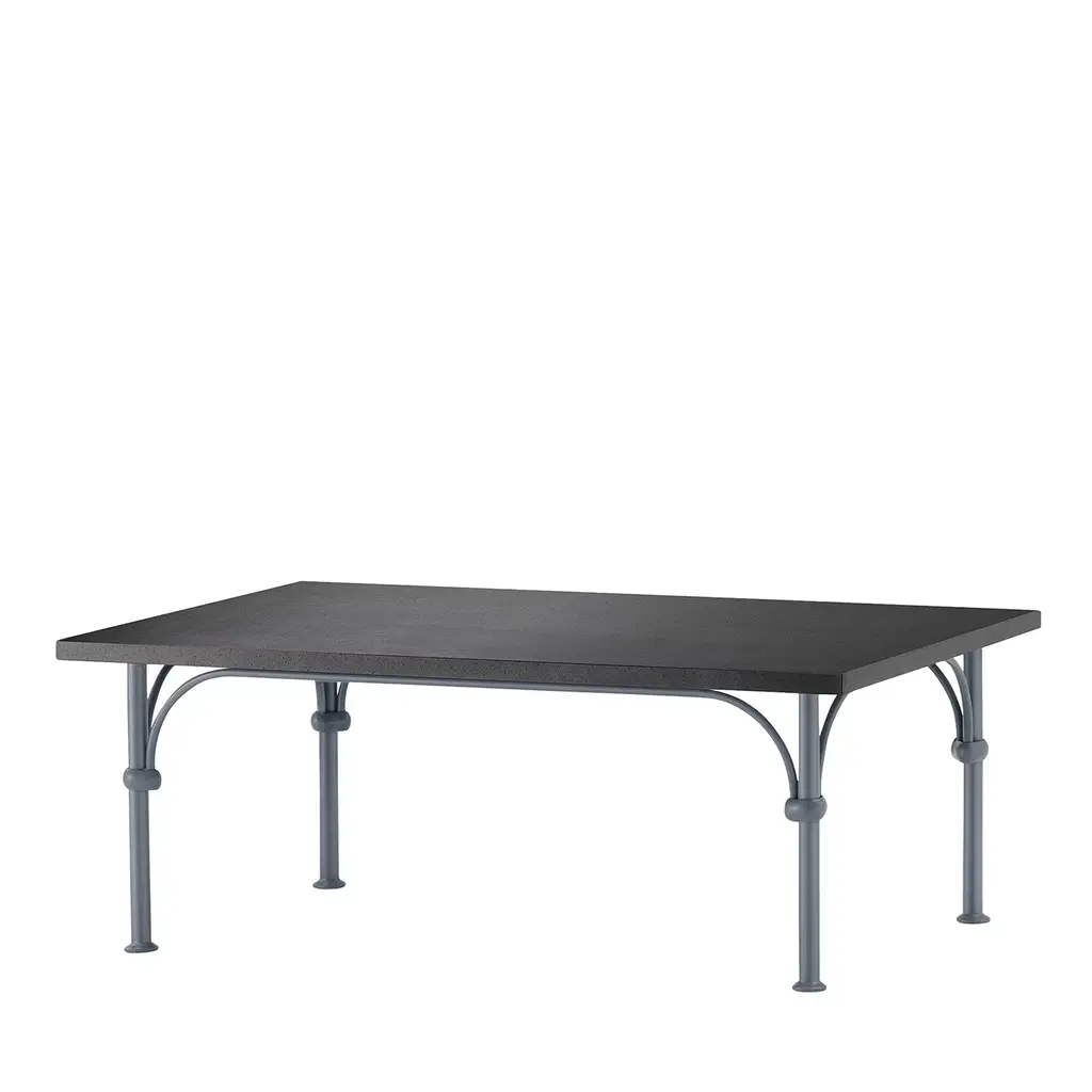 An impeccable balance between streamlined and curved profiles lends this table its distinctive harmonious appeal. Fashioned of precious lava stone, the rectangular top sits atop the elegant galvanized metal frame that, offered in a gray powder-coated finish, suggests the table's safe positioning in sophisticated outdoor contexts. Please contact the Concierge for available color options.