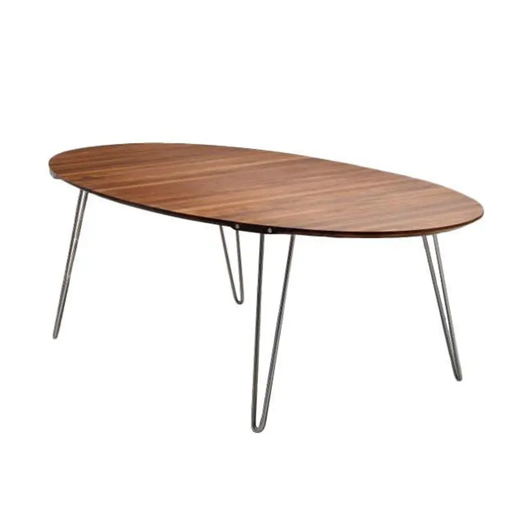 Teak 47-Inch Top Coffee Table With Jaguar Inspiration, Black Base, Pantê Line
