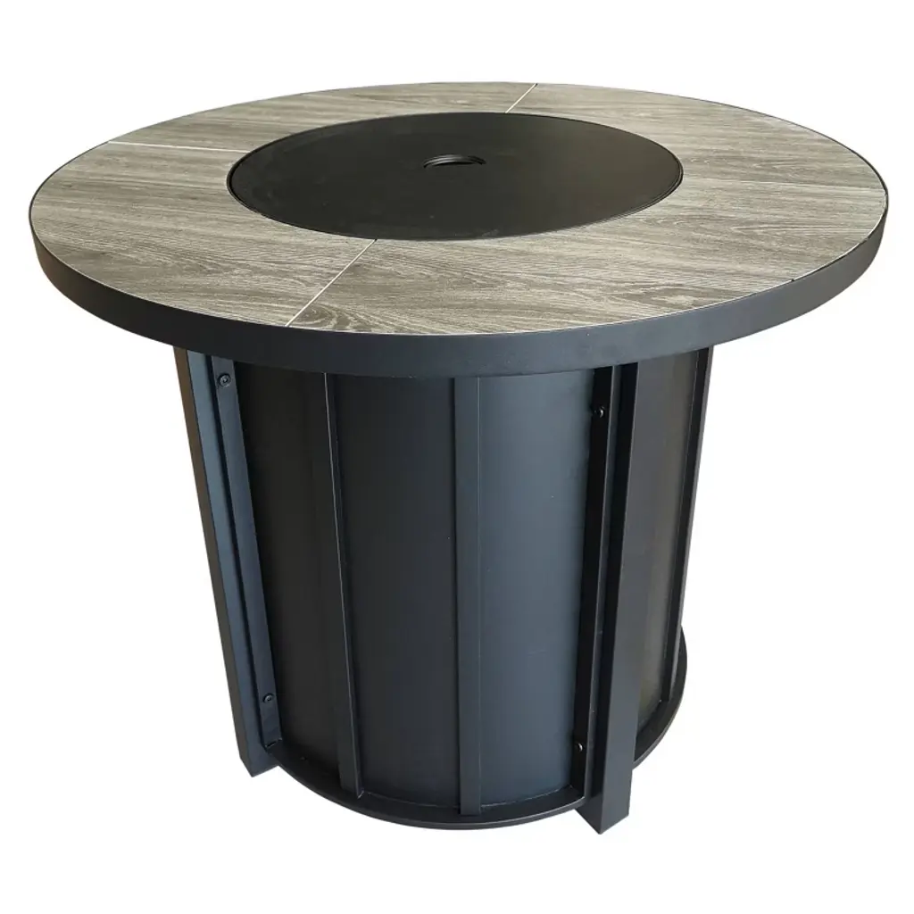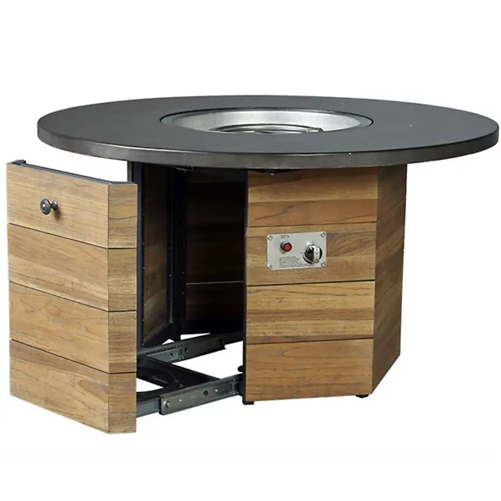 Teak Hexagonal Outdoor Fire Table With Faux Concrete Top