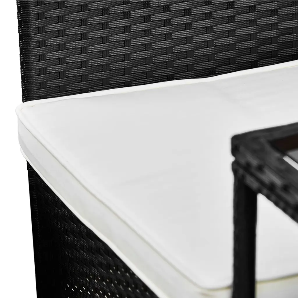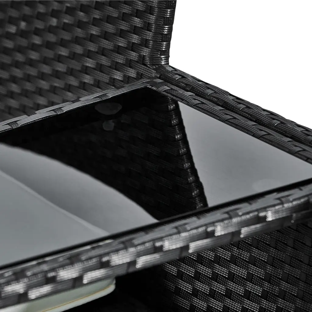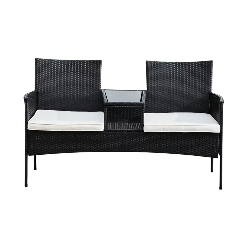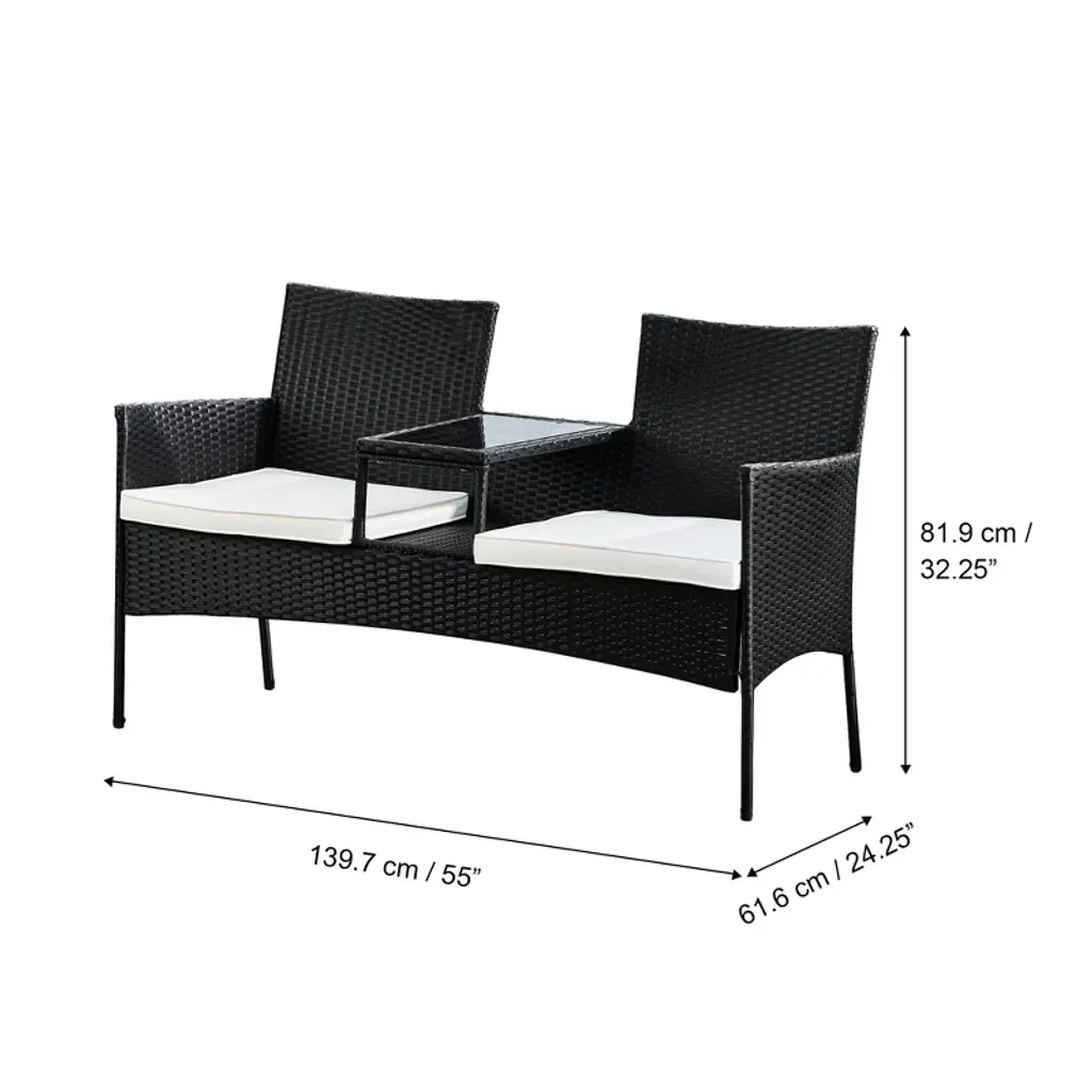 Teamson Home Outdoor Wicker Loveseat Bench With Table And Cushions, Black