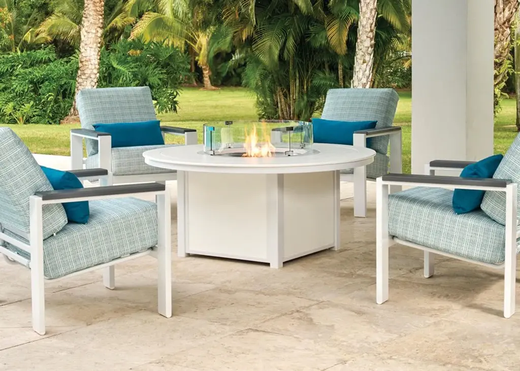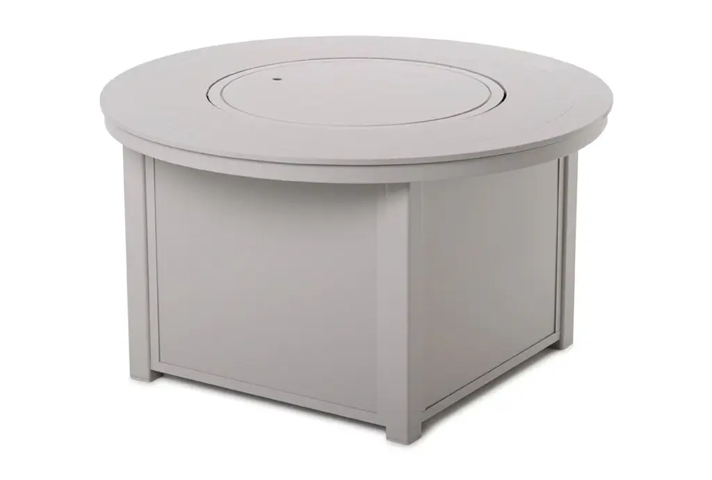 Started in 1903, Telescope Casual Furniture is world-renown for their quality and style. Using innovative techniques, they have perfected the art of all-weather outdoor furniture and fire pits. From their famous director's chairs to their outdoor furniture, everything is skillfully crafted in the USA. Available in many colors, Telescope Casual's Fire Tables utilize a Marine Grade Polymer (MGP) top. Marine Grade Polymer is a durable polyethylene material that has been used on yachts for twenty years. This proprietary material is 25% stronger than others like it in the market. It is stiff, sturdy, and scratch-resistant. Choose your powder-coat color and Marine Grade Polymer color. Standard Marine Grade Polymer colors will be on all vertical and horizontal surfaces. Accent MGP colors are available only on top surface of Fire Tables. Vertical side panels will be same color as powder-coat frame, except White frames will have Snow MGP side panels.