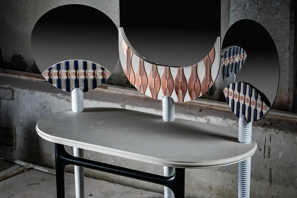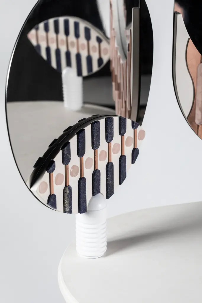 <p><em>Teodora</em> is the empress, the highest example of magnificence in the empire: she can only be the one to give the name to the dressing table, a feminine object par excellence dedicated to the care of beauty. Three mirrors similar to decorated fans act as a structure, linear elements that add up give rise to a contemporary object full of references to the past where marble is combined with other materials, suggesting a new interpretation of the Sicilian tradition</p> Signed by Maker,Signed by Maker