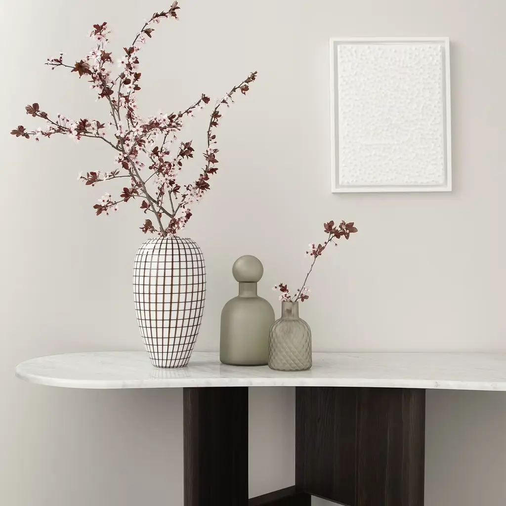 Tetris Console Table With Marble Top & Laguna Oak Wood Legs