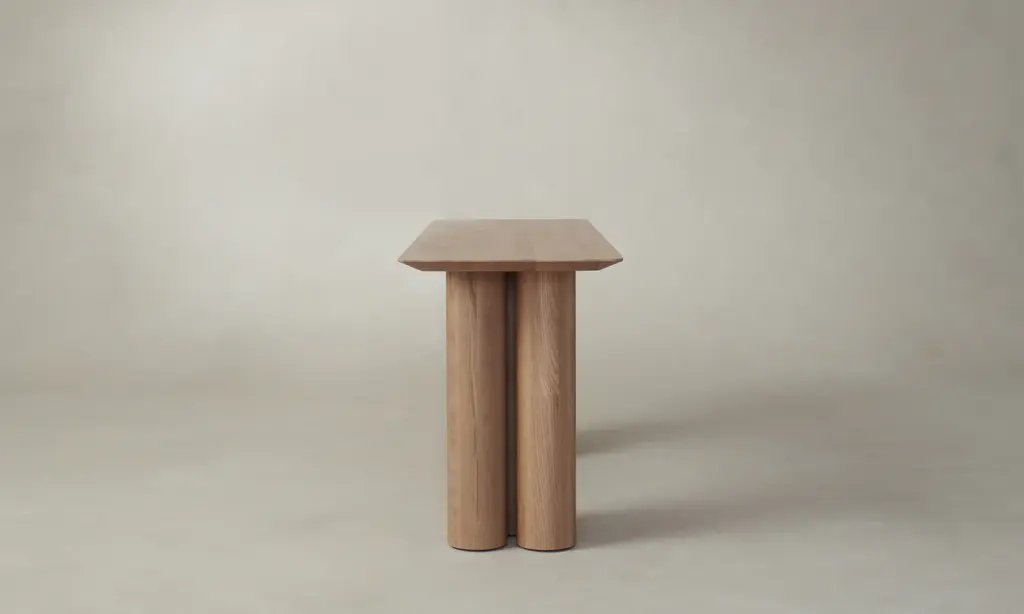 In the Reade Console Table, strong and sculptural forms collide. The design features a rectangular tabletop and columnar legs, each shaped from solid ash by Amish artisans. Handcrafted in Ohio.