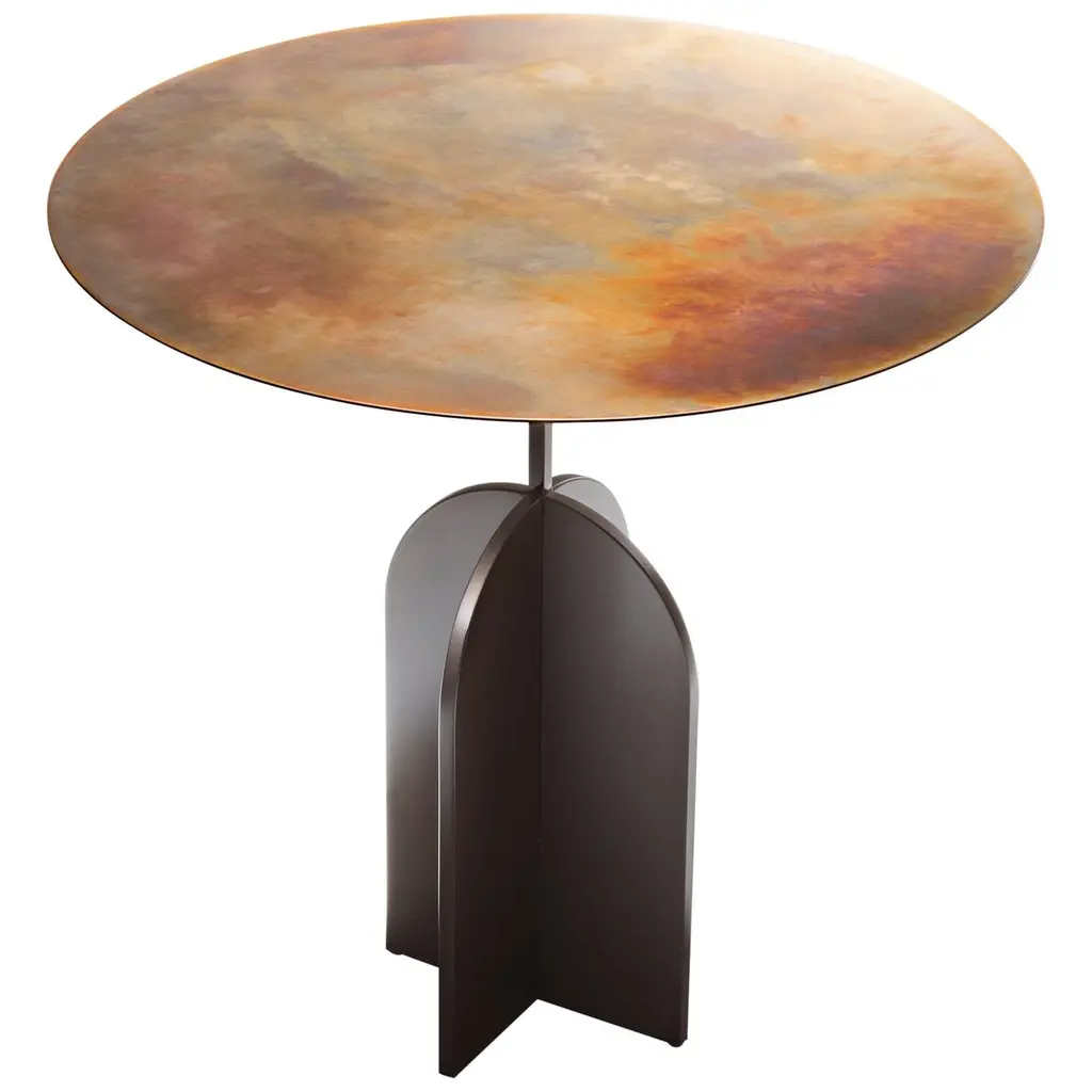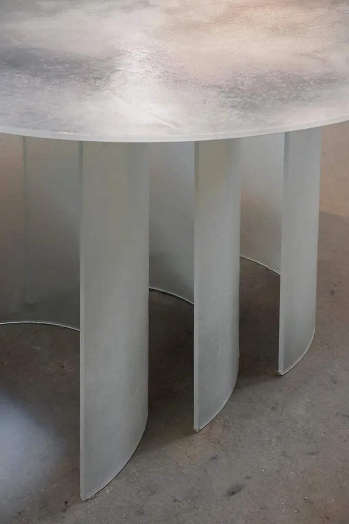 Thoth table by StudiopepeDimensions: D 140 x H 75 cmMaterials: GlassMultifaceted design agency Studiopepe was founded in Milan in 2006. Eclectic, voguish, it is thebrainchild of Chiara di Pinto and Arianna Lelli Mami, both of whom obtained their degrees in Industrial Design at the Milan Polytechnic University. Driven by their own distinctive multi-dimensional vision that arose from their studies in Interior and Industrial design, their studio work encompasses art direction, styling, interior, and product design, with an integral vein of storytelling that connects everything together.Drawing inspiration from the unexpected, their contemporarily classic designs are characterised by their equally minimalist and eclectic nature, uniting poetic vision and rigorous design. Studiopepe studies the dialogue between contrast and juxtaposition, with experimentation of materials, investigation of formal archetypes, installations, and art manifesting as integral themes to their work. Their projects are recognizable by their strong iconographic identity, formed through the cross-pollination of contemporary mediums and artistic disciplines as well as extensive research of colours and materials.Arianna Lelli Mami has always been fascinated by the ways people live and inhabit space, considering design from a fluid perspective, free from rigid schemes. Passionate about art, she collects ‘objets trouvés’ that are then re-explored and utilized to create installations that often inspire projects for the agency.Chiara Di Pinto received academic training in fine arts and has collaborated as an interior stylist and journalist for many Italian and international magazines. Due to her innate artistic intuition, she has always had a strong interest in materials, shapes, and colours, shaping her instinctive approach to design and love of research.