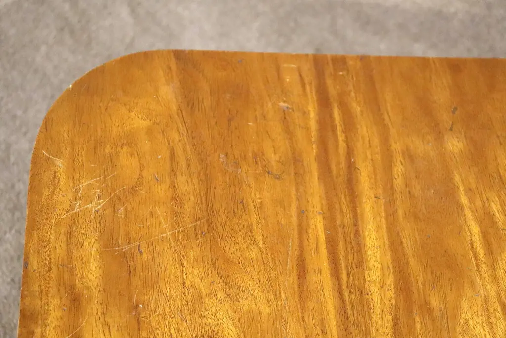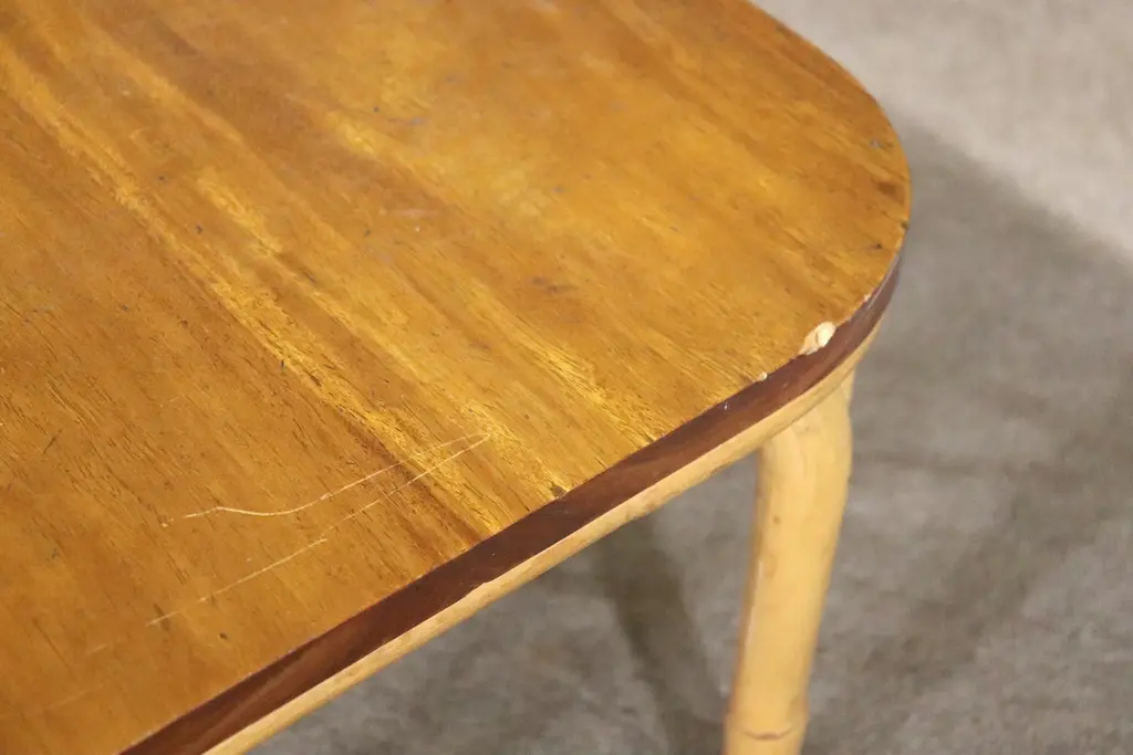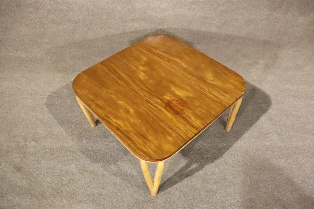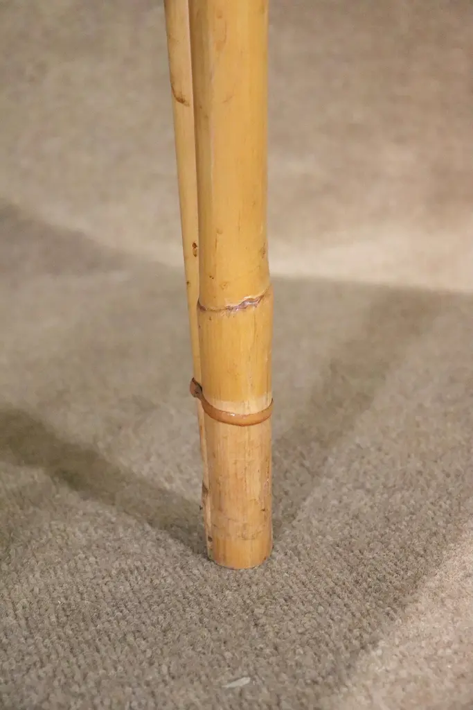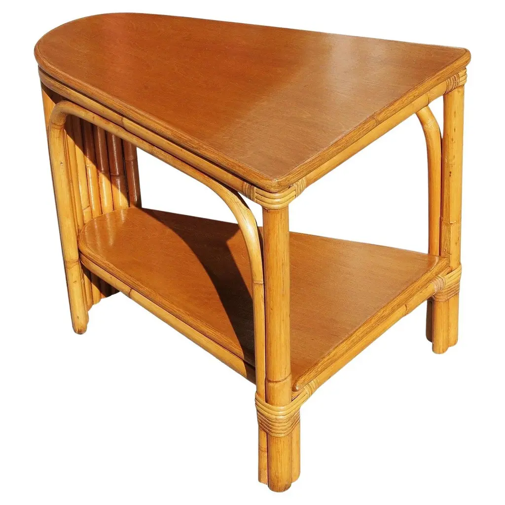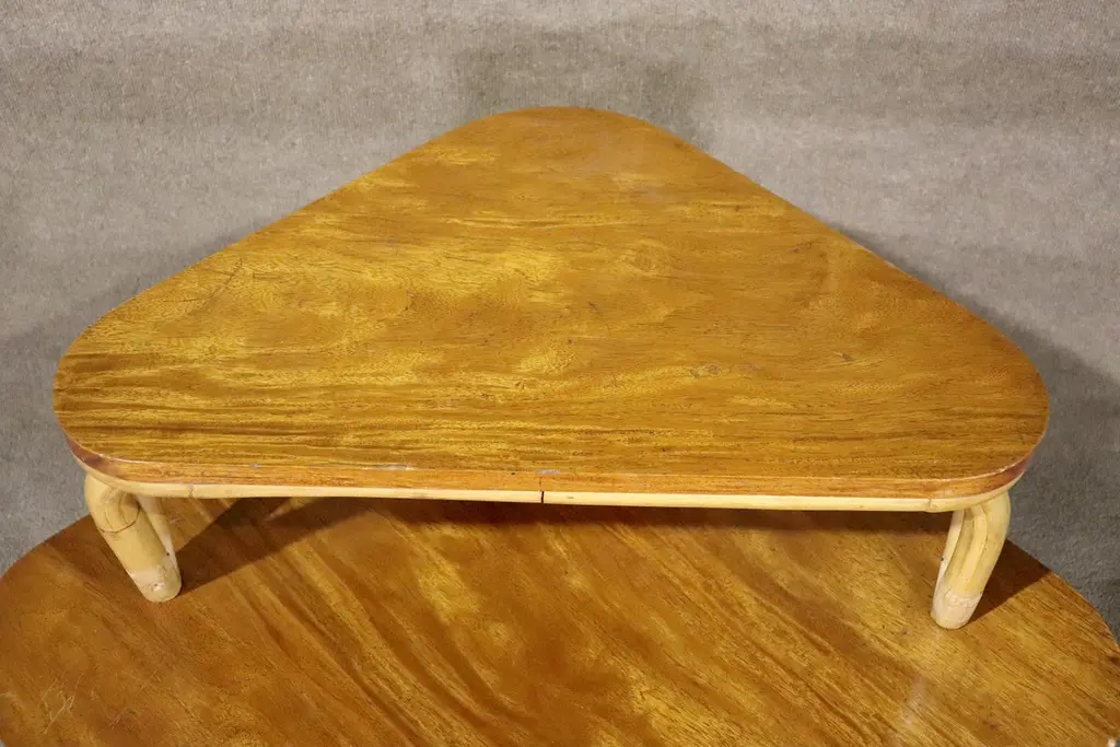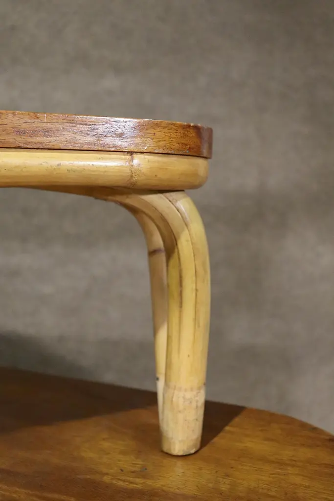 Mid-century corner table in bamboo and mahogany with tiered top. Top is removable.Please confirm location NY or NJ