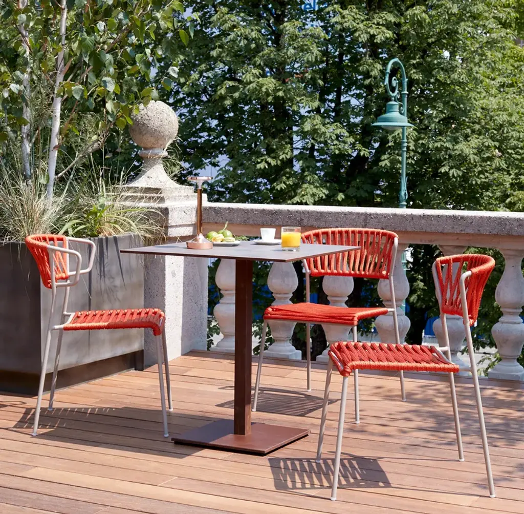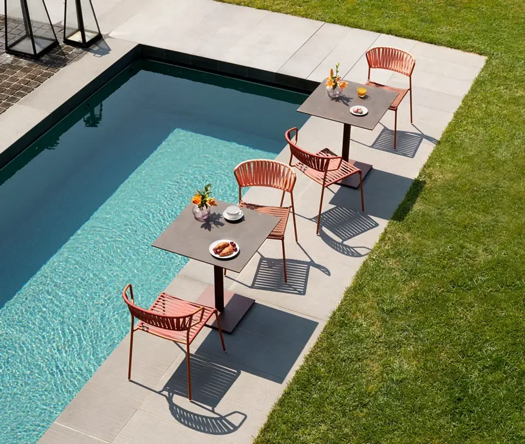 Tiffany - Square shaped column - 50x50mm.Available in 2 finishings: polished stainless steel, coated black steel or Corten effect.Thanks to the wide range of models, Tiffany is an across-the-board furnishing accessory for all the turnkey solution sector. Tiffany range includes bases with square or round base and column that can be combined with tops in different sizes and finishes.