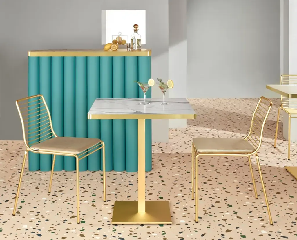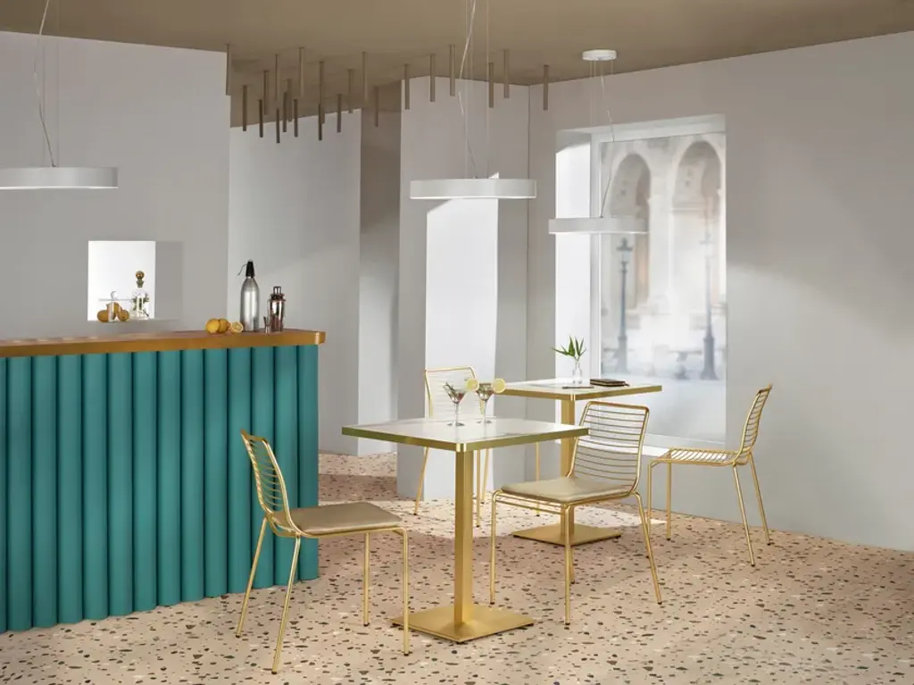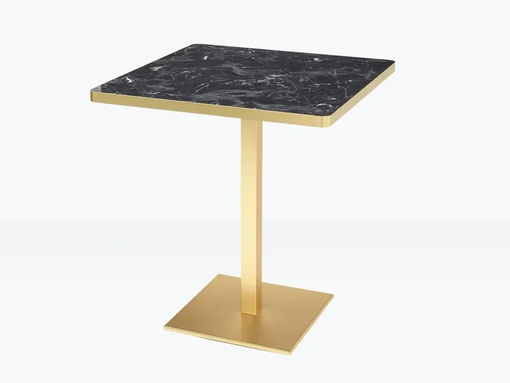 Tiffany - square contract table.Base with square steel column 50×50 mm.Laminate top with chipboard core. Flat brass ABS edge, thickness 30mm.Thanks to the wide range of models, Tiffany is an across-the-board furnishing accessory for all the turnkey solution sector. Tiffany range includes bases with square or round base and column that can be combined with tops in different sizes and finishes.