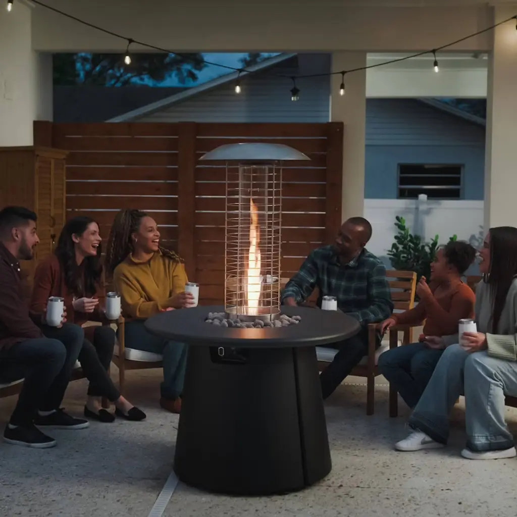 TIKI® Brand’s new Customizable Propane Fire Pit's modular design caters to anyone’s backyard space. The Heater Attachment provides added warmth and comfort with a six-foot heat radius for those cooler evenings. Designed so you can continue to enjoy the ambiance of the flame while amplifying the heat. Pair it with the Glass Surround and Table Attachments to easily set the mood and keep you comfortable.