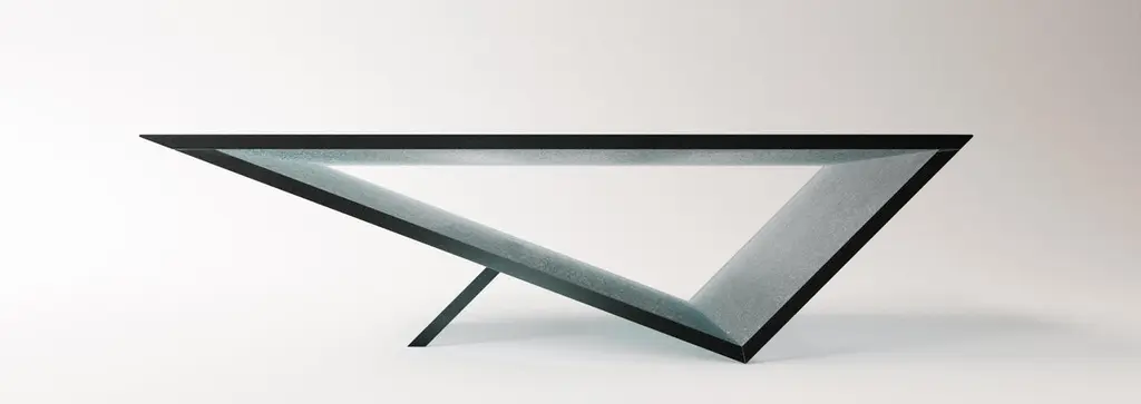 Time-space portal table in green kiln cast glass by Neal Aronowitz DesignDimensions: D 167.7 x W 63.5 x H 45.7 cmMaterials: green colored kiln cast glass.This table can be fabricated in any available glass color. The inspiration for the Time/Space Portal Table collection comes from the power, simplicity, and elegance of the triangle.This is an ongoing series exploring the dynamics of balance, weight, gravity, mass, and how this dynamic is expressed utilizing various materials. A powerful Minimalist gem with a dynamic presence. This green colored kiln cast glass coffee table has an etched finish with polished edges.Neal Aronowitz art/design was founded in 2014 and with just a few powerful and iconic pieces of furniture and lighting, has quickly won acclaim in the international design world.The vision of the studio is the design and fabrication of highly sculptural, hand crafted bespoke furniture and lighting.Aronowitz’s debut piece was the Whorl Coffee Table, which won international notice including a feature in Elle Décor and was the recipient of a People’s Choice Award at the AZ Design Awards, sponsored by Azure Magazine.