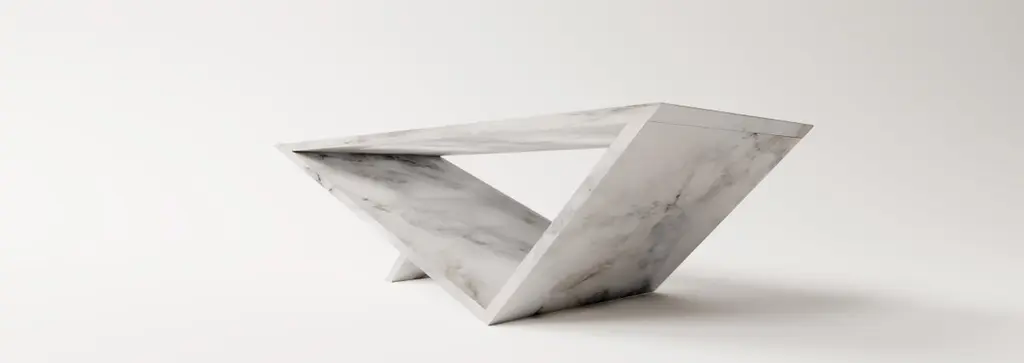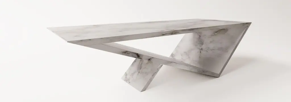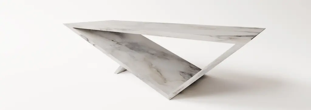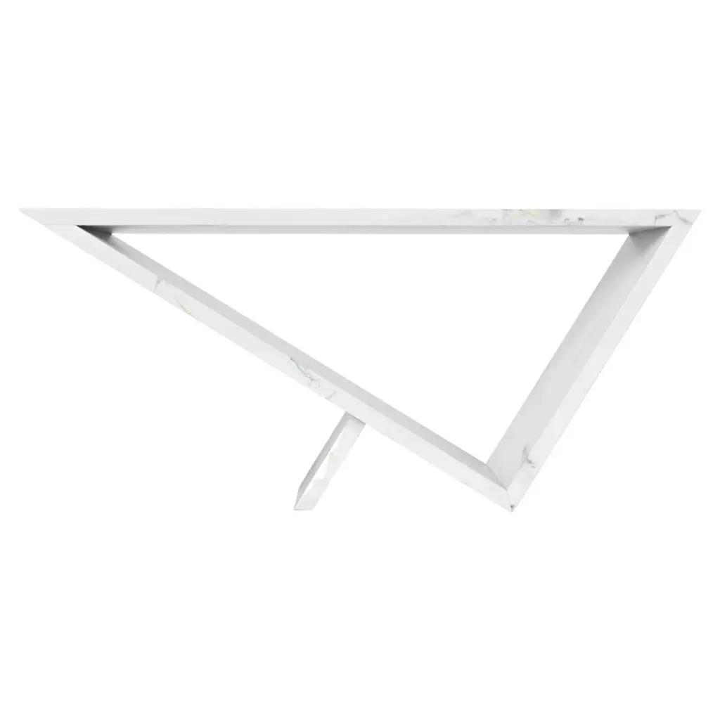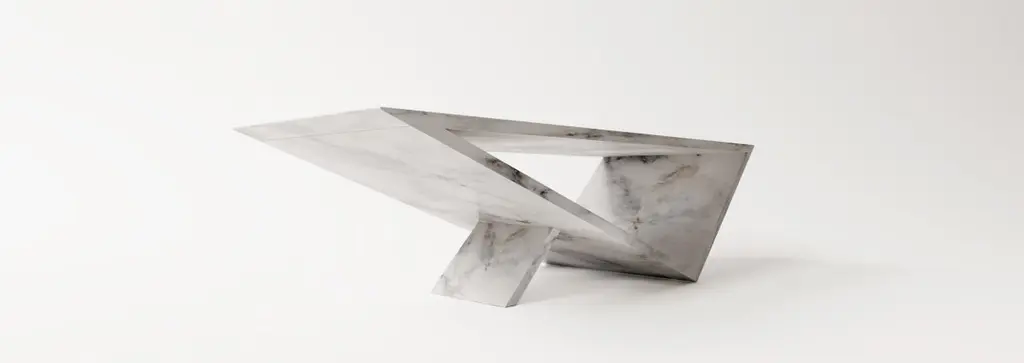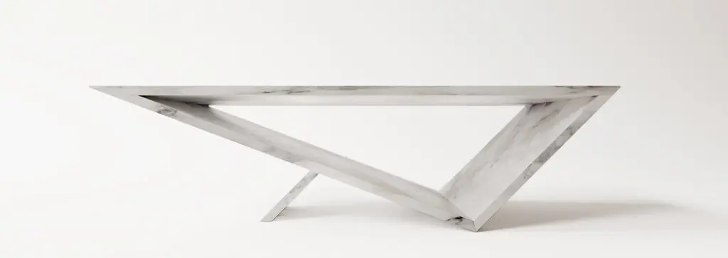 Time/space portal coffee table in Calacatta marble by Neal Aronowitz DesignDimensions: D 167.7 x W 63.5 x H 45.7 cmMaterials: Calacatta Marble.This table can also be made in other finishes and types of stone. Please contact us.The inspiration for the Time/Space Portal Table collection comes from the power, simplicity, and elegance of the triangle.This is an ongoing series exploring the dynamics of balance, weight, gravity, mass, and how this dynamic is expressed utilizing various materials.A powerful Minimalist gem with a dynamic presence. This elegant and powerful coffee table has a honed finish.Neal Aronowitz art/design was founded in 2014 and with just a few powerful and iconic pieces of furniture and lighting, has quickly won acclaim in the international design world.The vision of the studio is the design and fabrication of highly sculptural, hand crafted bespoke furniture and lighting.Aronowitz’s debut piece was the Whorl Coffee Table, which won international notice including a feature in Elle Décor and was the recipient of a People’s Choice Award at the AZ Design Awards, sponsored by Azure Magazine.