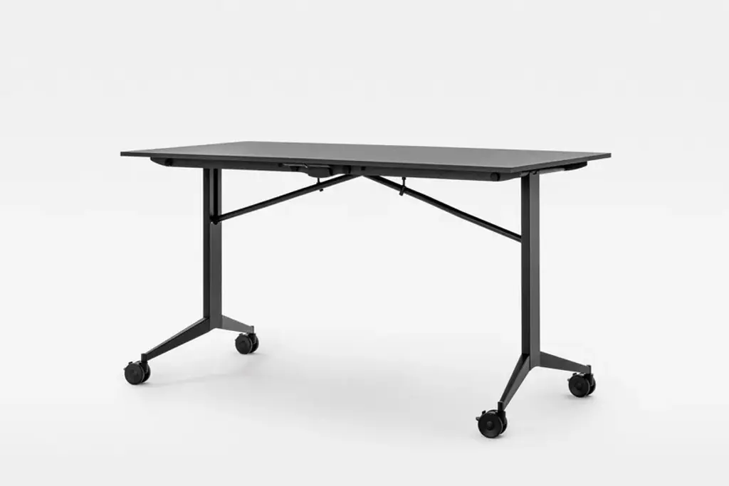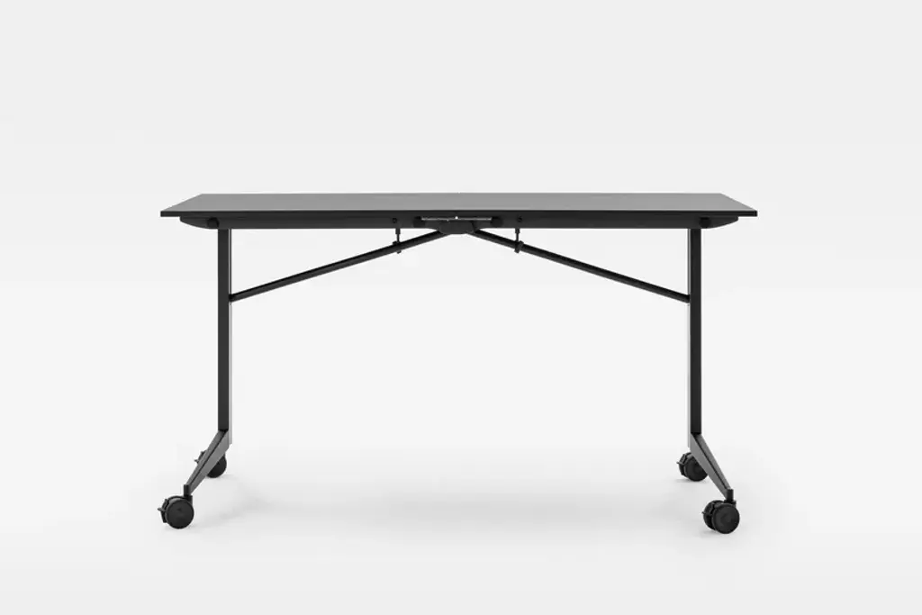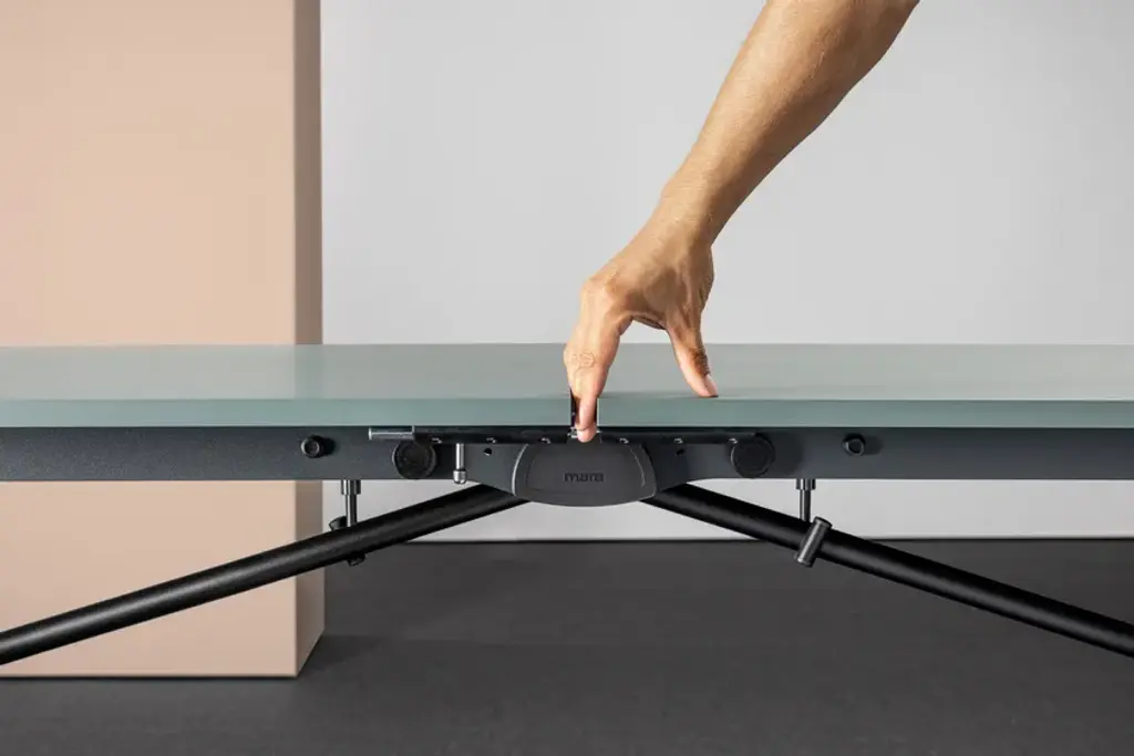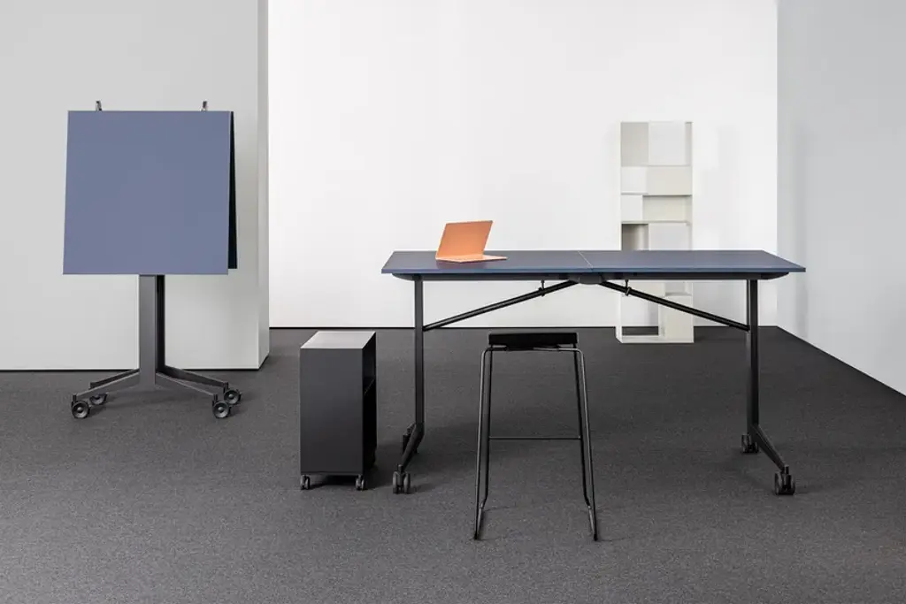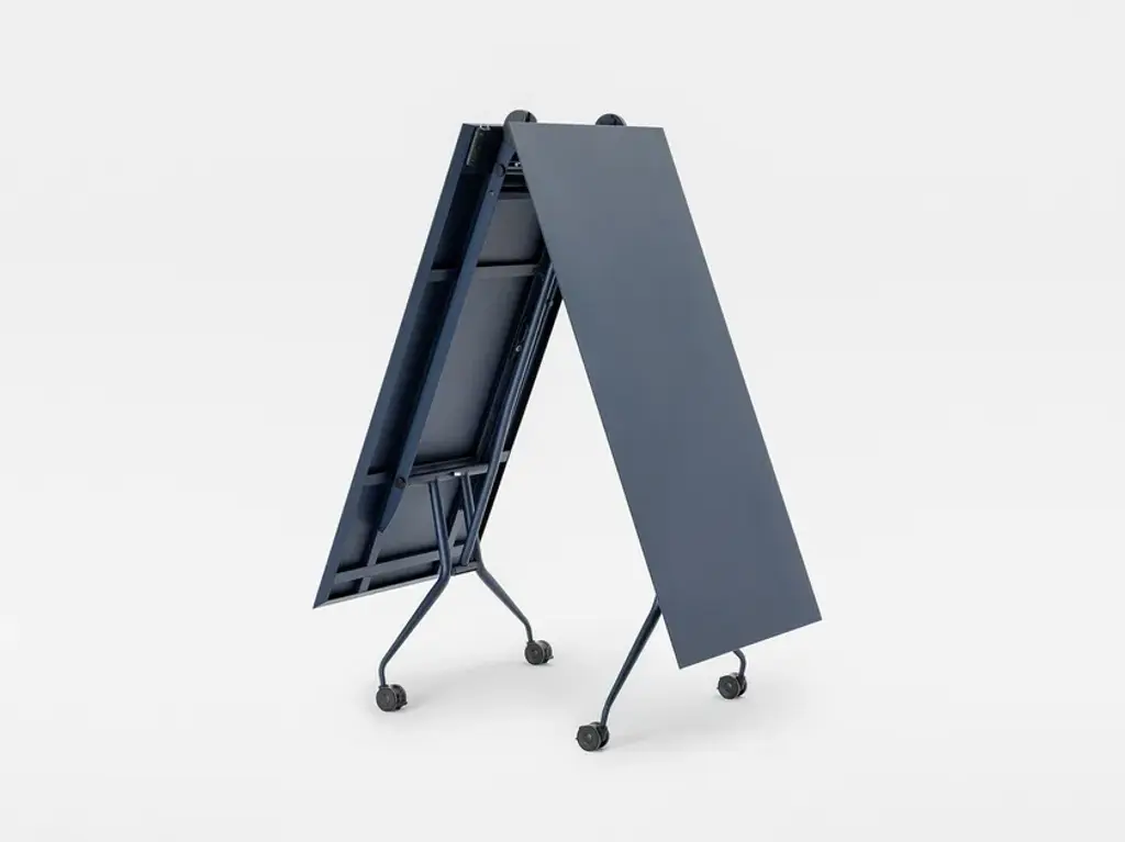 Timmy Libro H1050 is a new version of Timmy collection. A space-saving table that can be folded in 50 cm featuring a top 1050 mm high. An even more versatile solution for stand or seated meetings that offers a great flexibility and dynamics to different environments: from workplace to hospitality. The mechanical folding system allows one person only to easily open the table. Once closed it can be troubleless moved through doors and elevators as well as stored in small spaces. Timmy Libro is provided with the exclusive antishock system, designed and patented by Mara.