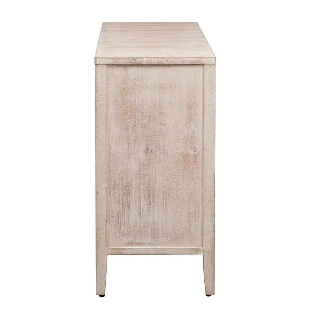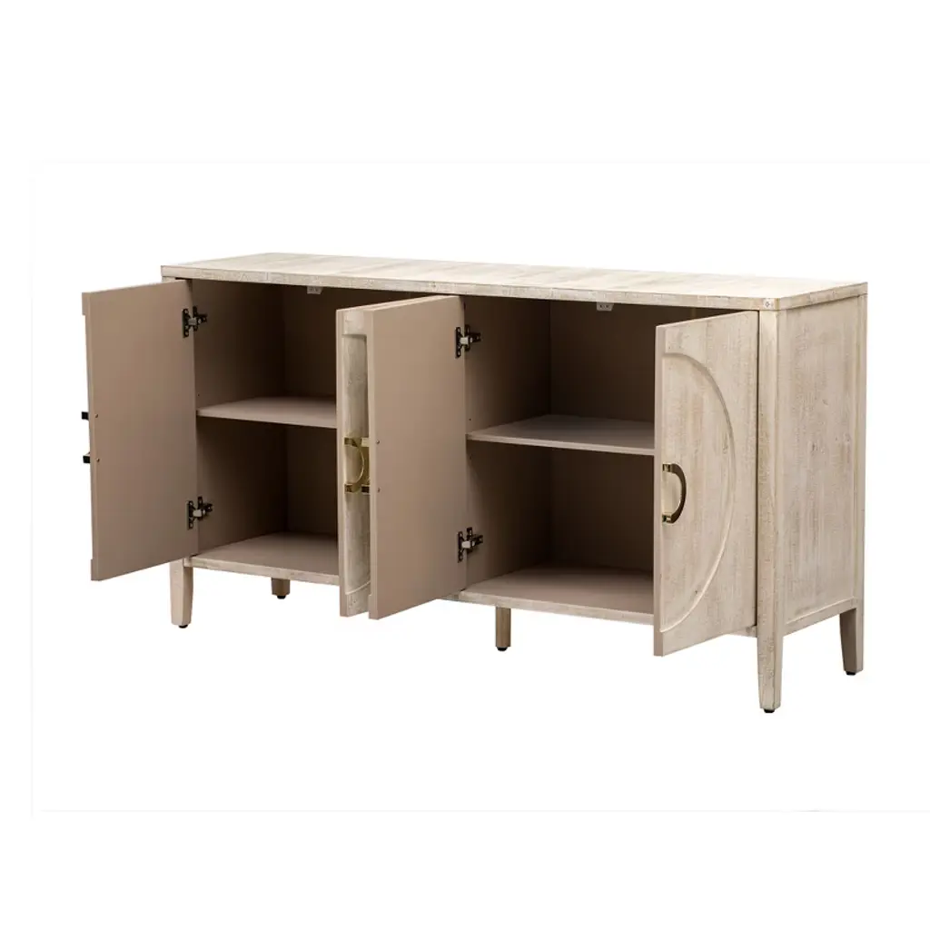 This locker is highlighted by its unique fir veneer texture, and the specially treated surface presents a rich relief texture, which enhances the beauty of natural wood grain and creates a dual enjoyment of touch and vision. Its five-legged design, including the central support leg, provides excellent stability and balance while giving the space an elegant look. The circular detail design of the cabinet door adds an artistic touch and unique charm, making it the focal point of any room.