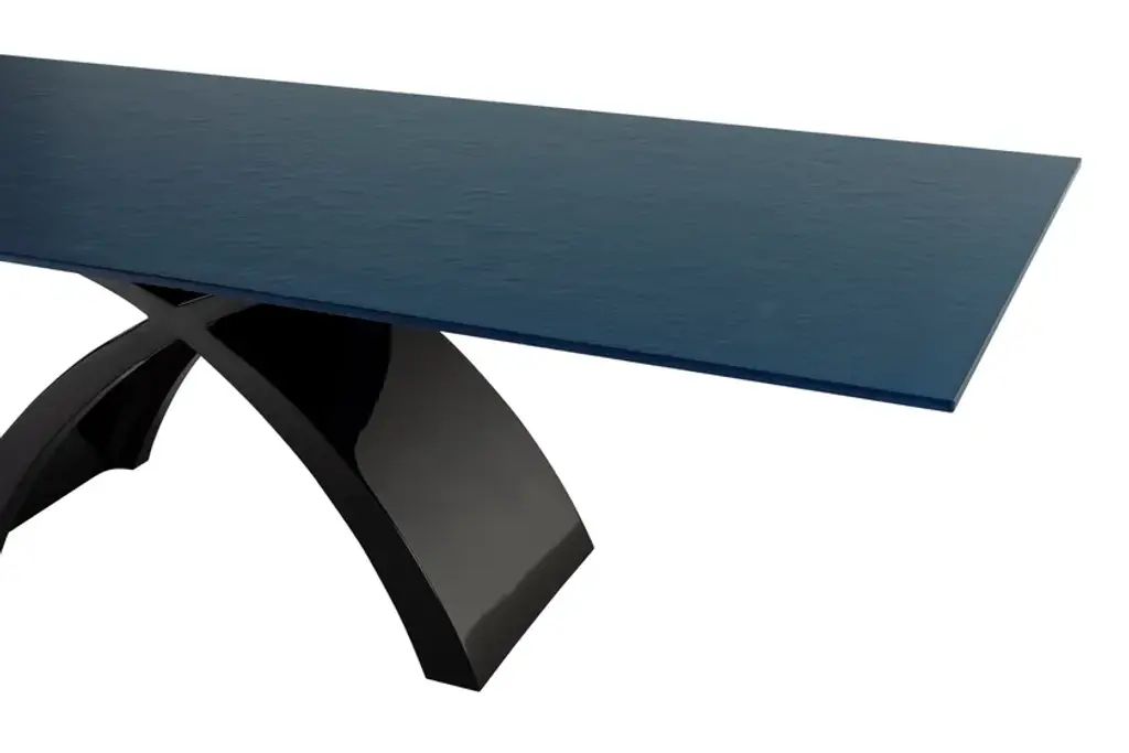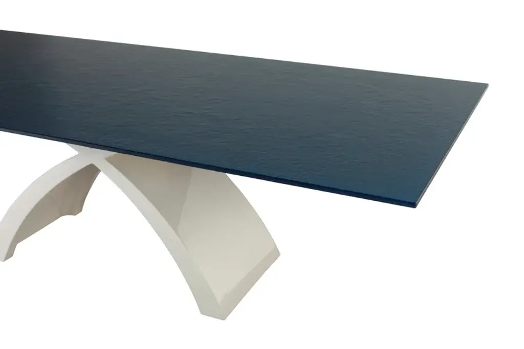 Tokyo, available both in the fixed, and the extendible version, with an aluminum guide-bar, and glass tops. The legs are made out of cultured marble, and their strongly dynamic lines can be completed by a RAL finishing, a detail that allows you to customize your own dining room. You can create numerous combinations, and Tokyo’s design will always result both contemporary and classic, especially because of the wooden extendible top.