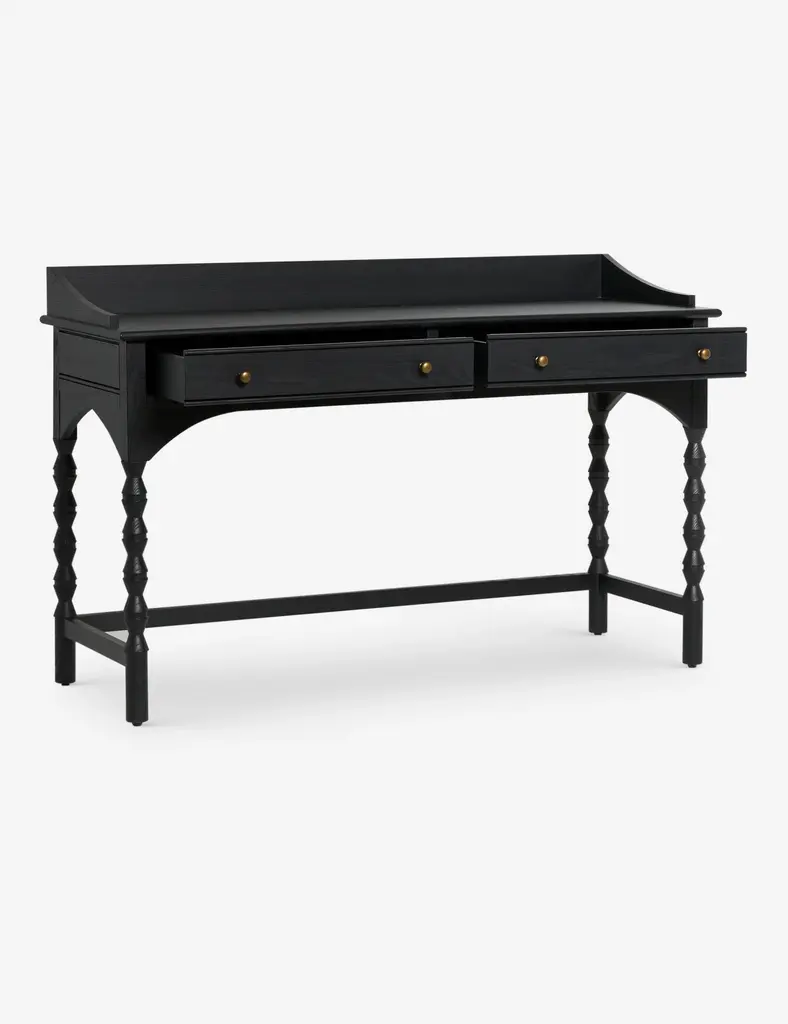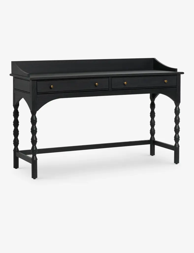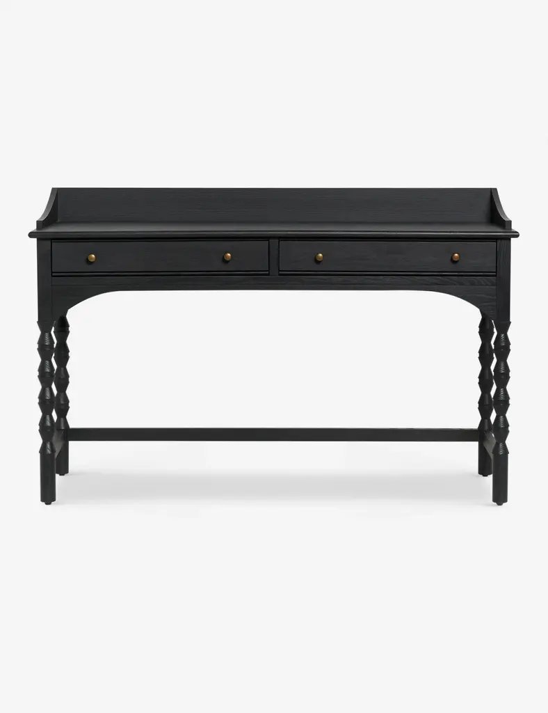 Traditional meets modern in this console table from the exclusive Ginny Macdonald collection for Lulu and Georgia. Inspired by Ginny's English heritage and fondness for handcrafted details, each piece in the collection fuses her British roots with her California lifestyle. Turned legs add a touch of drama to the console's transitional design featuring an airy profile with two spacious drawers.