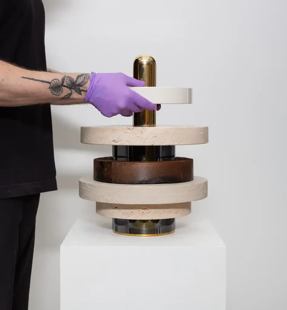 Toys berlin perception untitled i table sculpture by vaust edition of 3 + 1 a.p. Dimensions: d 32 x h 44 cm materials: brass, mdf ivory shiny lacquered, oak remains of the old berliner stadtschloss, navona travertine, grey acrylic glass, leather covered mdf this piece is telling a story about a time in berlin well spent. The rich history in 18th century architecture and the the massive cultural impact of buildings such as the former (and now rebuild) berliner stadtschloss. The piece captures the existence of a well situated and educated society that is beyond berlins rough attitude and takes place in theaters, the philharmonie and old fashioned restaurants. Berlin untitled i is an homage to a reality that we experience as guests inside our own city and that happens to be a sort of guilty pleausure. Vaust is a berlin-based, award winning design studio working in the intersection of interior design, object design and creative direction. Our spatial design procedure covers various fields from residential and retail to hospitality and corporate spaces. We dedicate ourselves to unconventional thinking, distinctive aesthetics, artistic design, efficient planning and precise realization. Our object design procedure describes our creative take on one-of-a-kind items, studio own collections + projects as well as commissioned work. A new sphere emerges and is blurring the lines between furniture and art. We understand that sphere as our working basis. When working in the field of creative direction we translate our artistic and distinctive approach, enrich it with our strategic and corporate experience and apply this to brands and products as well as communication all the way from print to digital. This piece is attributed to the mentioned designer/maker. It has no attribution mark and no official proof of authenticity, however it is well documented in design history. I take full responsibility for any authenticity issues arising from misattribution