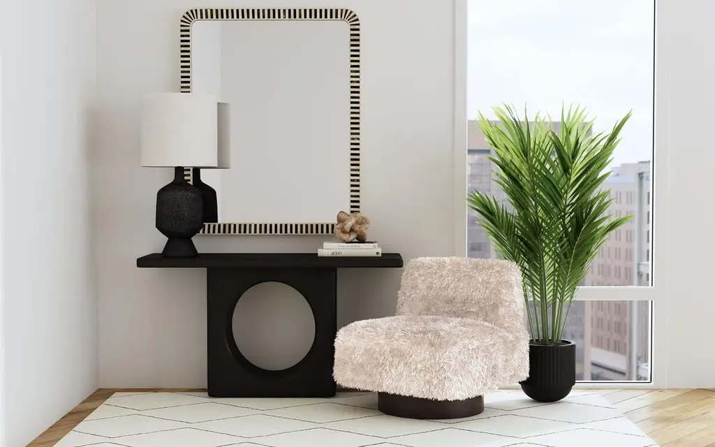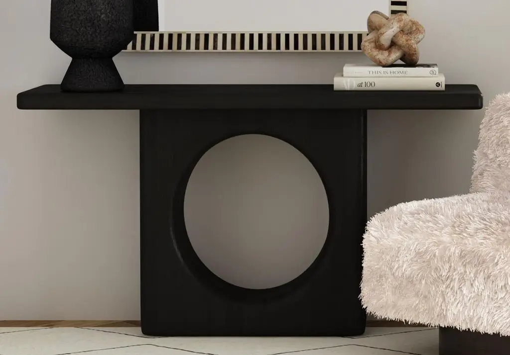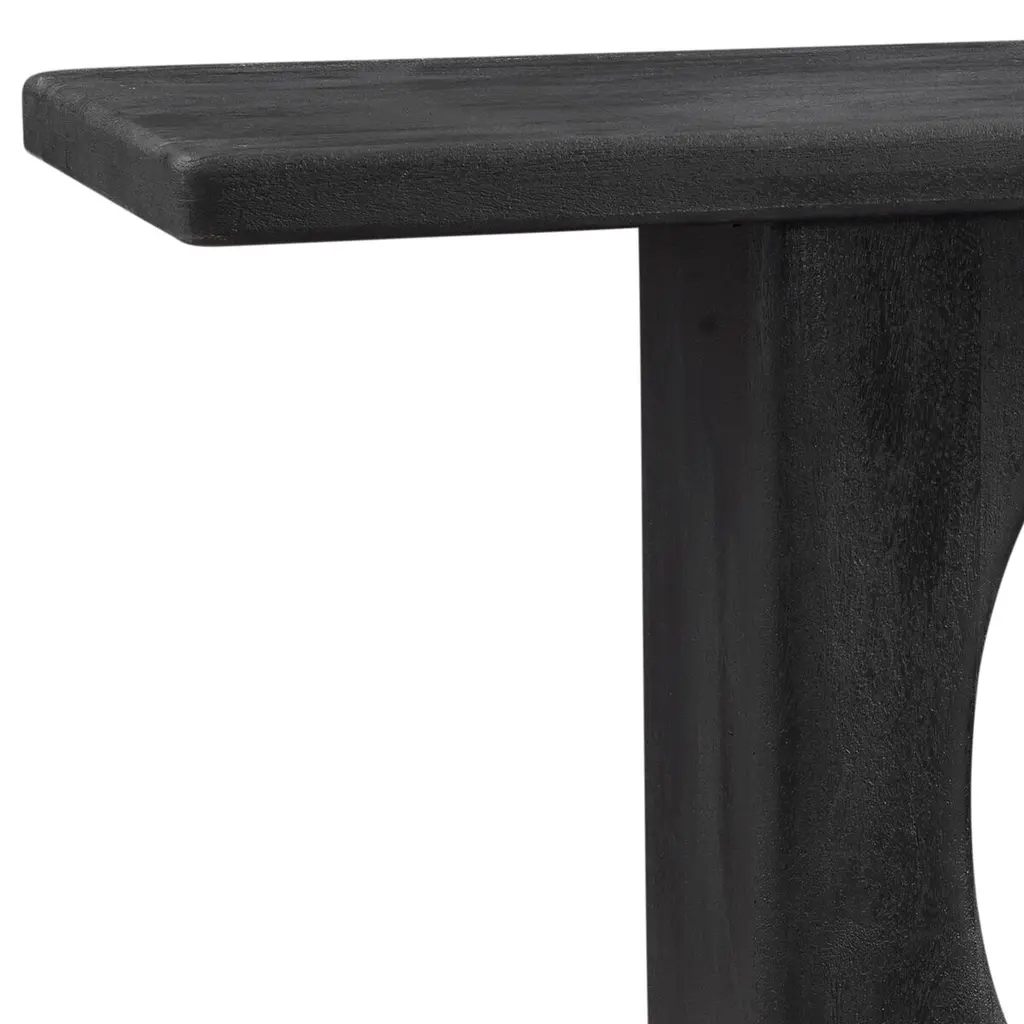 The Travis Console Table is a blend of rustic and modern design with a striking finish. Crafted from sandblasted solid mango wood, its substantial top and base offer a captivating presence. Mango wood boasts a naturally textured finish with a charming distressed effect.
