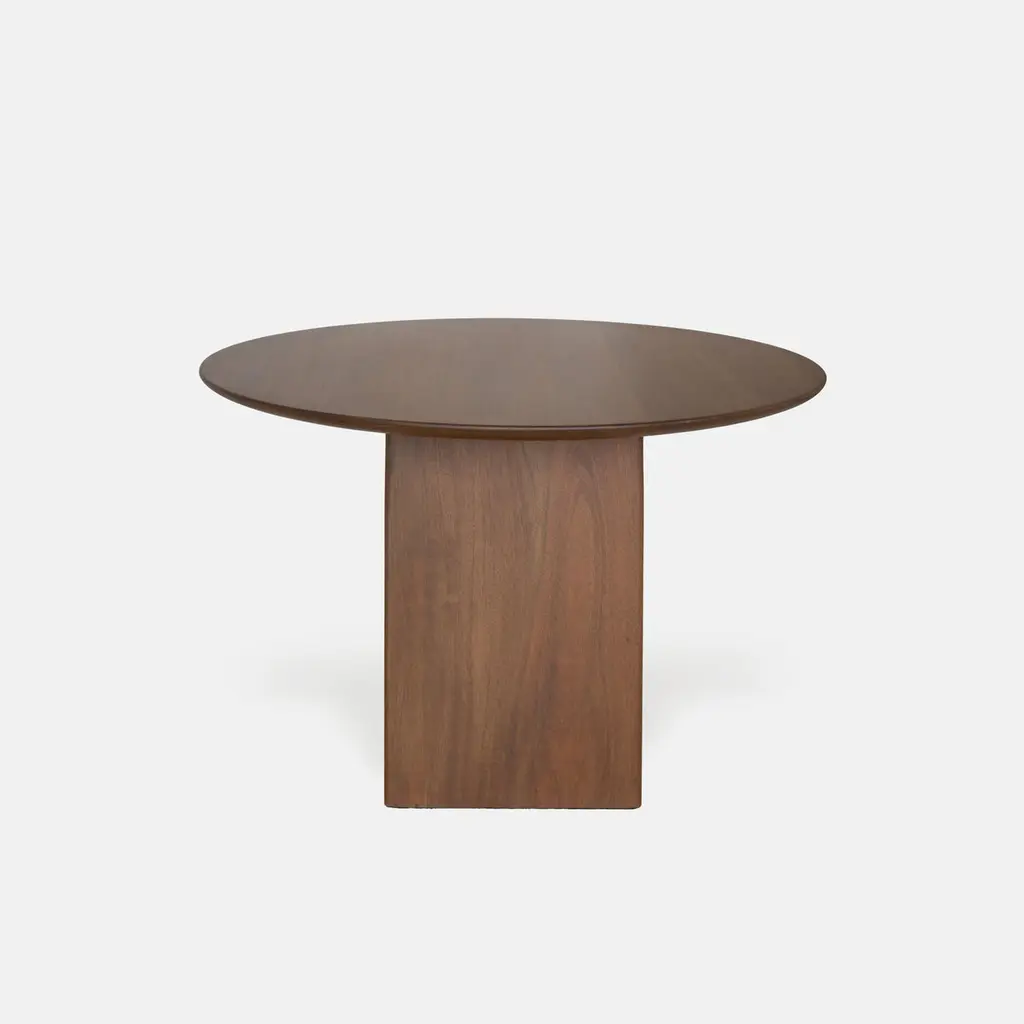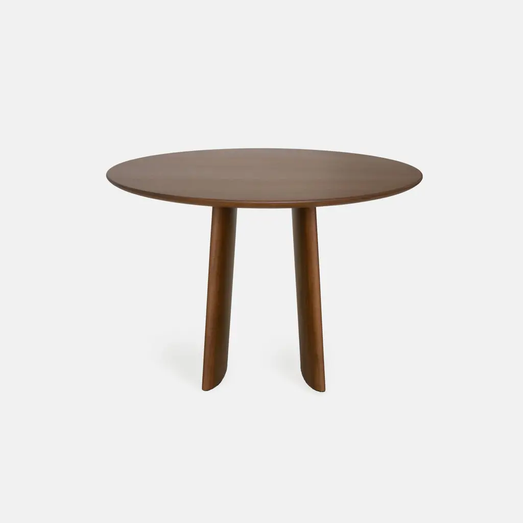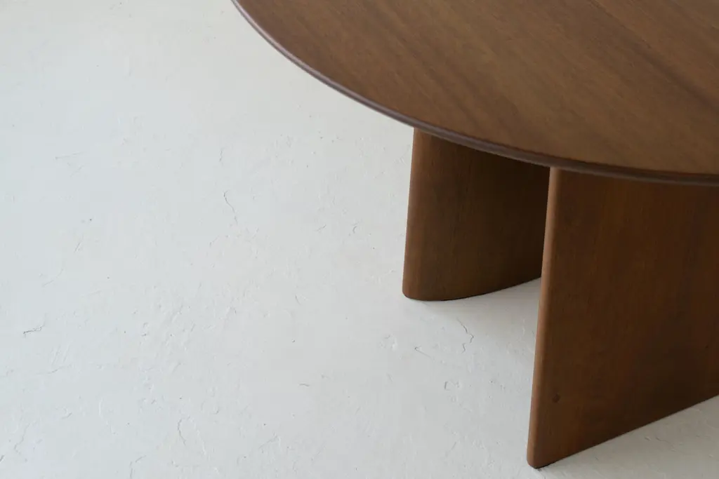 Three solid parts with a straightened face and rounded back compose the Três Table. The round top maintains a height in the central part that allows the legs to fit directly, eliminating the need for locks in the structure of the table.