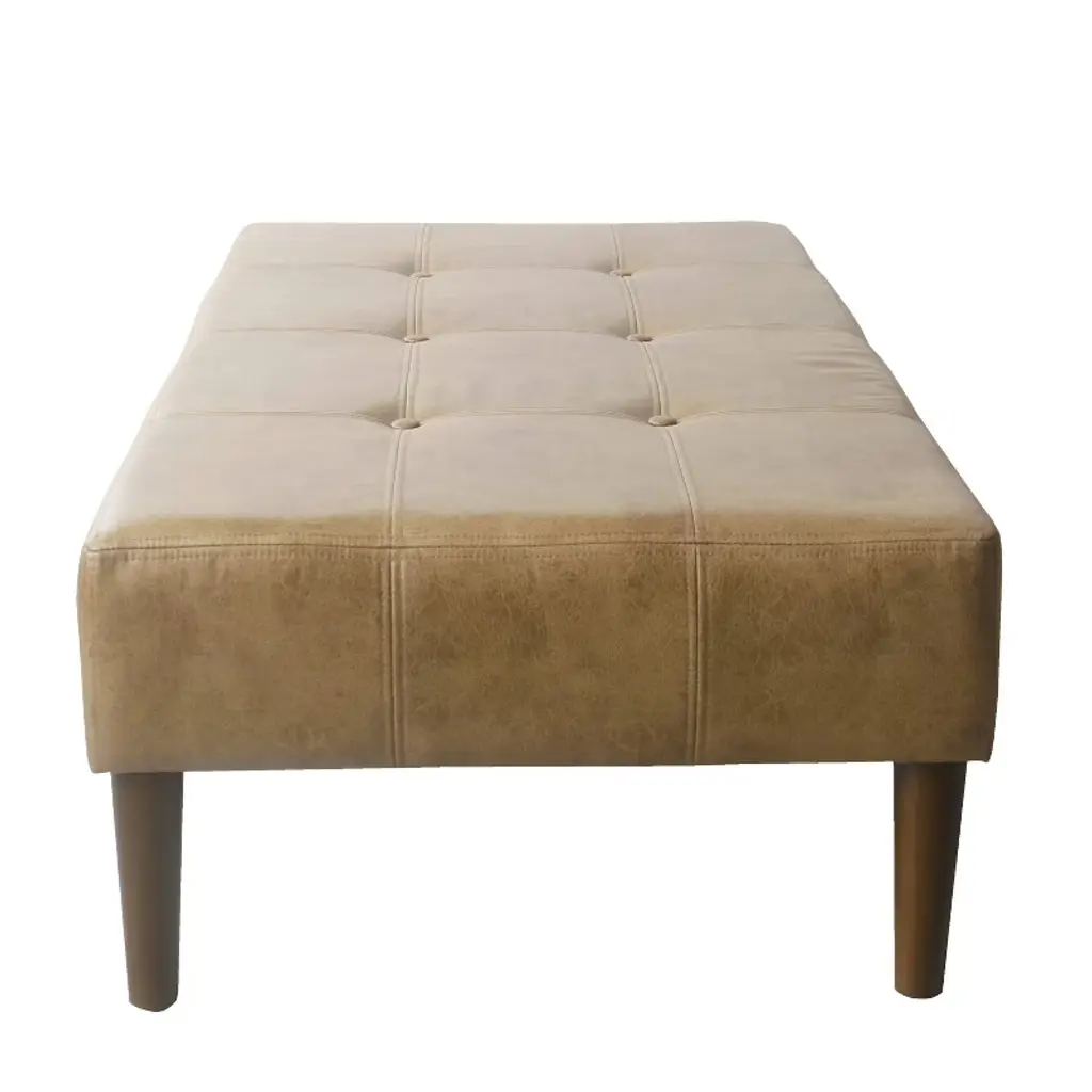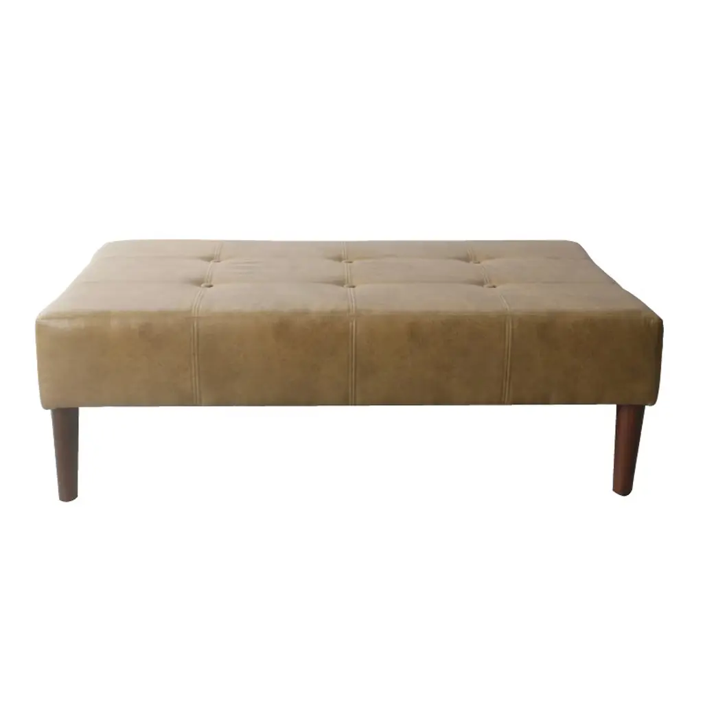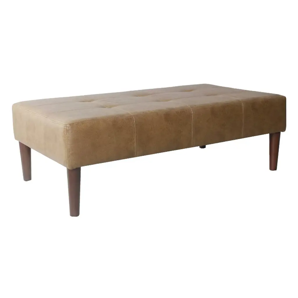 Tufted Coffee Table Ottoman Faux Leather Light Brown - Homepop