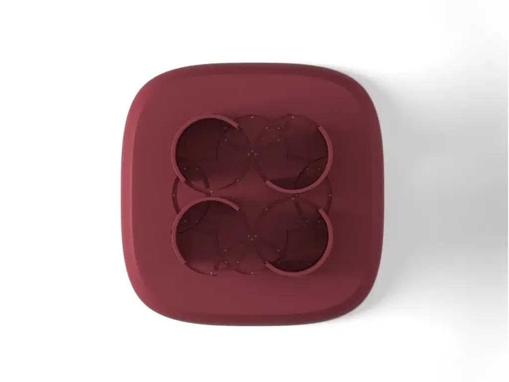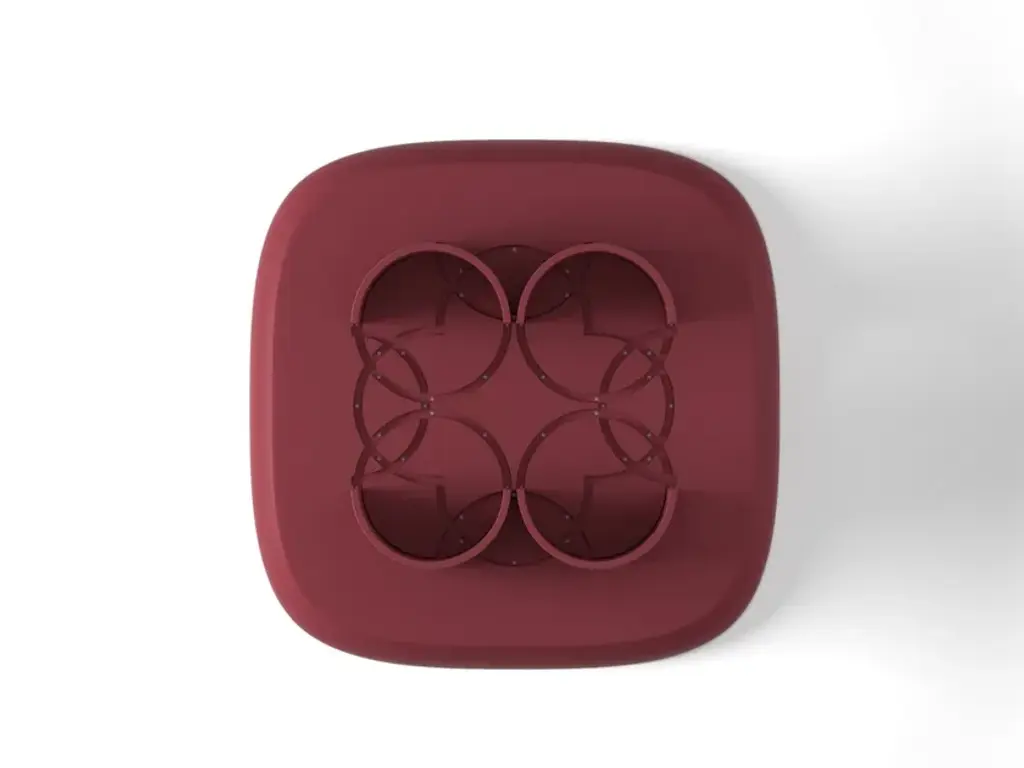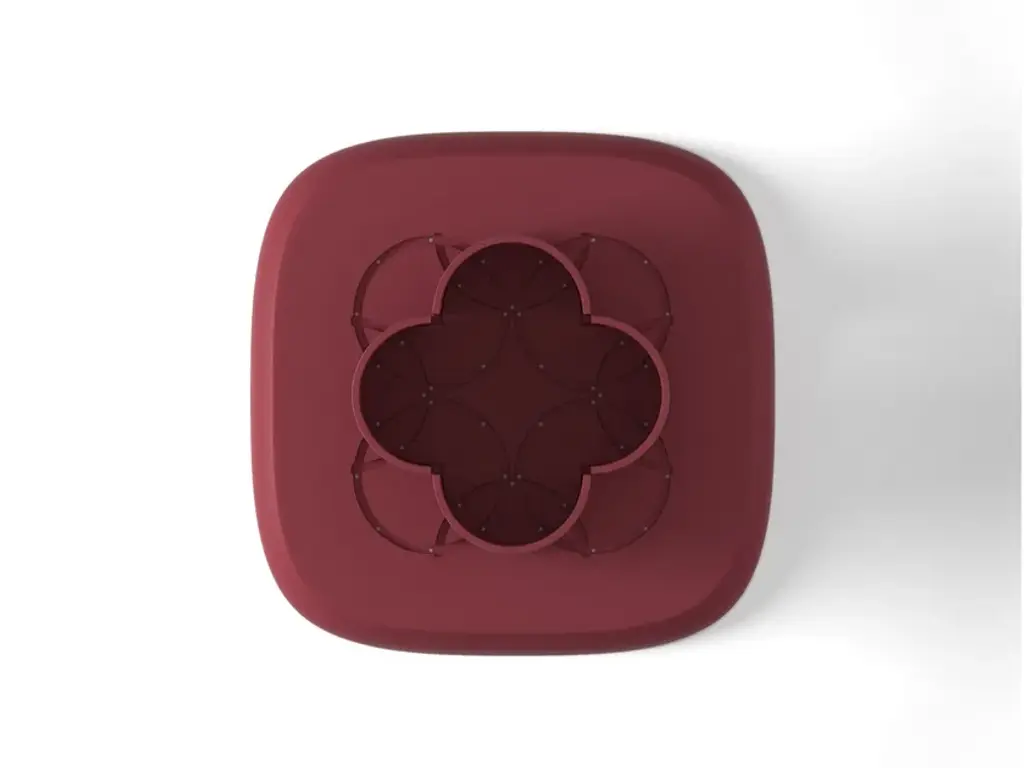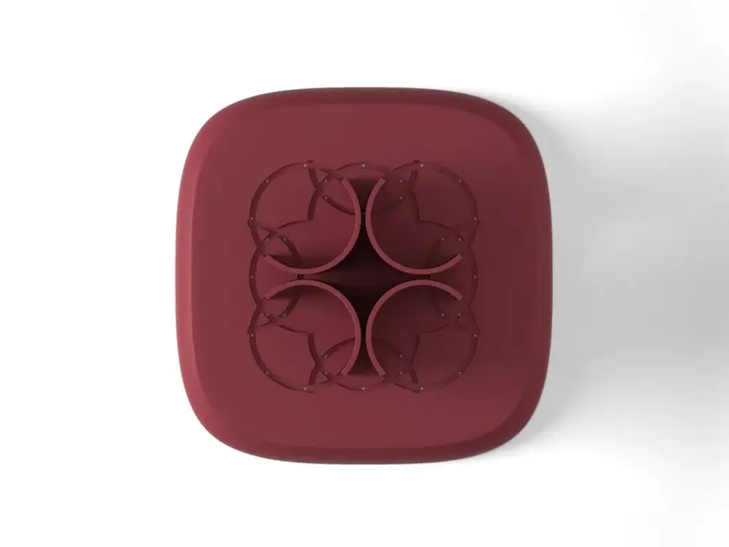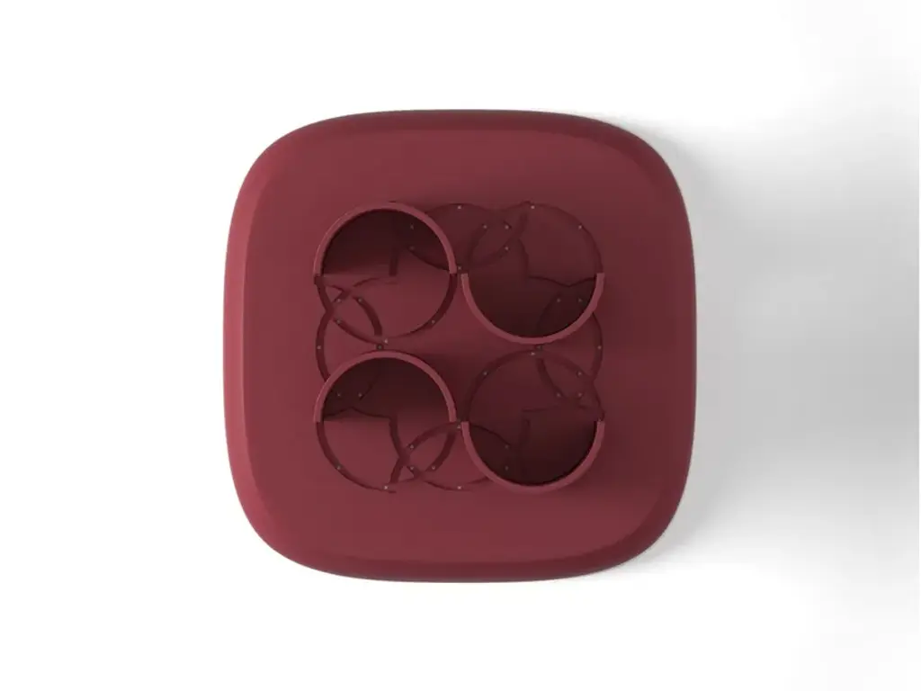 Turno is a square wooden table.“Exquisite melting silken tints, veined roses and pale violets, like the draperies of Veronese, golden orange, yellows, vinous and intense, like Titian’s simarres … undulate, conflict, and lose themselves under the innumerable flaming darts descending from above at every discharge of the sun’s rays.”Hippolyte Taine, Italy Turning identity. An object and its infinite possibilities; unique and unmistakeable, while at the same time constantly different. Like the lagoon landscape, in its infinite nuances of luminous reflections, glare and iridescent colours, the table designed by frattinifrilli – Milanese designer Davide Frattini Frilli – reveals itself to be a piece of furniture with an unmistakeable identity, which simultaneously expresses numerous aspects of its identity.In TURNO, a tabletop with an imposing personality – solid, and at the same time lightweight, entirely similar to a solid sculpture, at the same time refined by the gently rounded forms – houses four supporting elements with semi-circular base, equally compact and decisive in their plastic linearity. The various components of the furniture piece together express an ingenious and surprising mechanism: the legs, rotating on themselves and positioning themselves differently in relation to the surface, indeed going so far as defining numerous different configurations.TURNO is a table which becomes infinite tables: it contains within it the concept of customisation and tailor-made design, and centres on interaction with the space and the relationship with the person choosing it for their own domestic landscape.