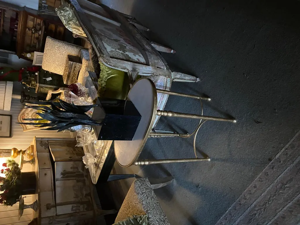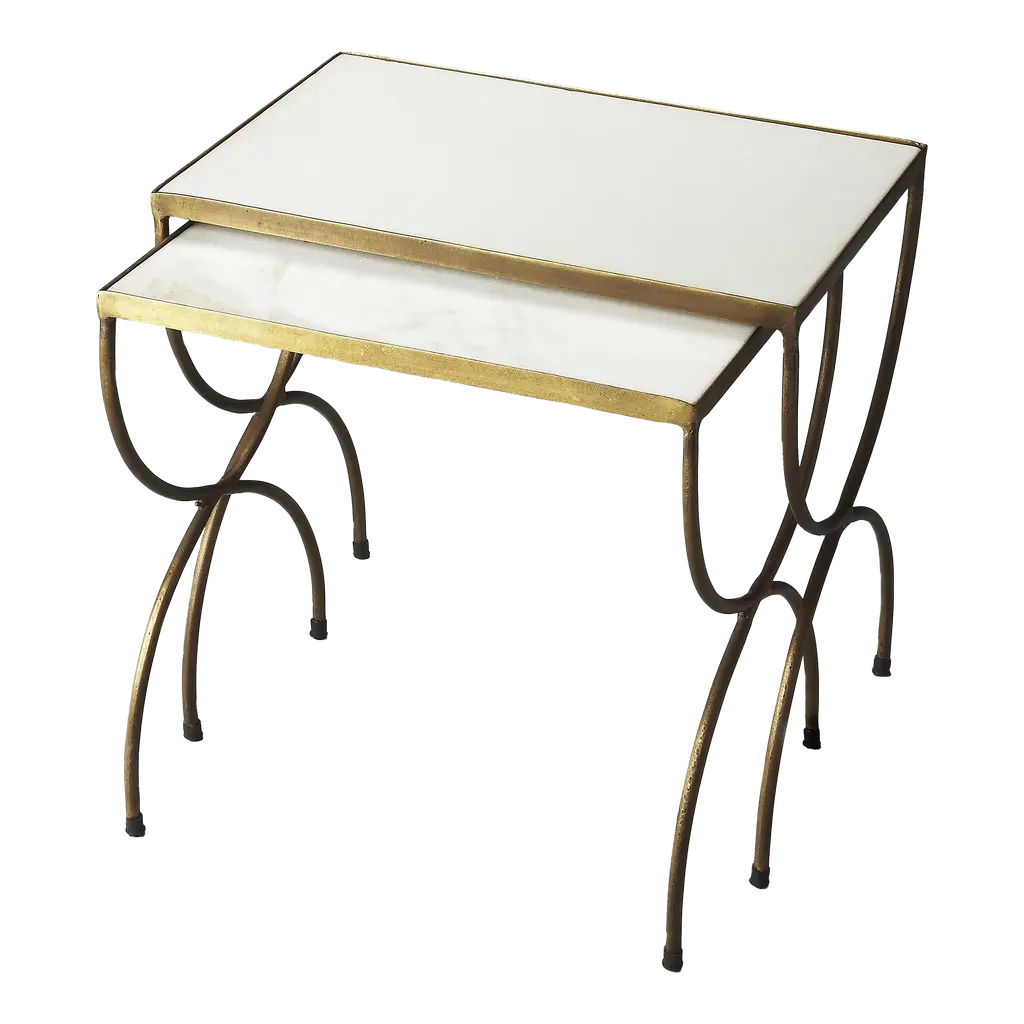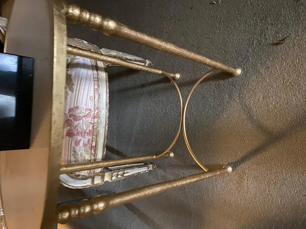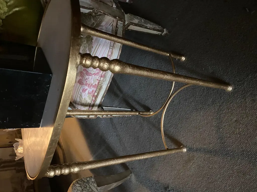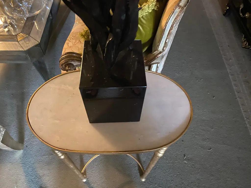 Charming pair of gilt metal and marble drinks tables. Priced per table. Excellent condition