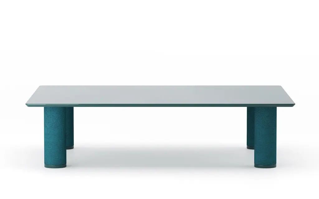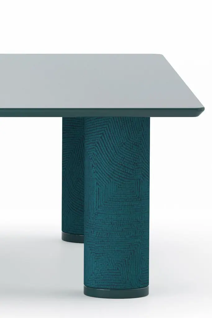 Uma rectangular coffee table by Purho.Dimensions: D90 x W120 x H30 cm.Materials: Resin, fabric upholstered legs.Available in other colors.UMA Rectangular is a table from the collection of the same name designed by Ludovica+Roberto Palomba for P + C Edizioni in spring 2022.Featuring a rectangular resin top, UMA Rectangular puts the design accent on the table’s cylindrical pedestal legs upholstered in soft Dedar fabrics — some intended for the indoor world, others outdoor — the names and textures of which hark back to echoes of distant world sand cultures: Eneide, Babelia e Fr Song-way merge references to abstract landscapes, Bauhaus geometries or archetypal forms dear to the historical avant-garde. Or, on the opposite side, the lightness of summer with geometric textures with unequivocal names: Summertime and Basquette. Thus the textile selection made by Ludovica + Roberto Palomba is not limited to covering the legs of the tables, but becomes both structure and decoration at the same time.Composed of five tables of different shapes and sizes to be used alone, side by side, stacked, inside or outside the home, the tables of the Uma collection are a hymn to versatility. Sober yet unexpected, elegant yet unconventional.Purho is a new protagonist of made in Italy design, a work of synthesis, a research that has lasted for years, an Italian soul and an international character, thematic collections of Murano glass objects , designed by great designers, made by great glass masters.Purho expresses the identity and the original vocation of design: to create “fairytale objects”, vases, lights, glasses and other glasses capable of living forever in space and time in a correct, magical and ultra-functional way.Purho was born from an untouchable, divine concept-word, purity, contaminated by material factors, earth, air, fire, water, enriched by the human factor, that h which indicates humanitas, i.e. transience, perfection of imperfection, uniqueness.Purho is the materialization of an aspiration , a tension towards imperfect perfection, that is, a radically, profoundly human drive.