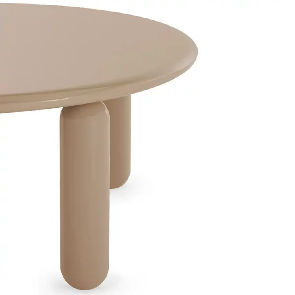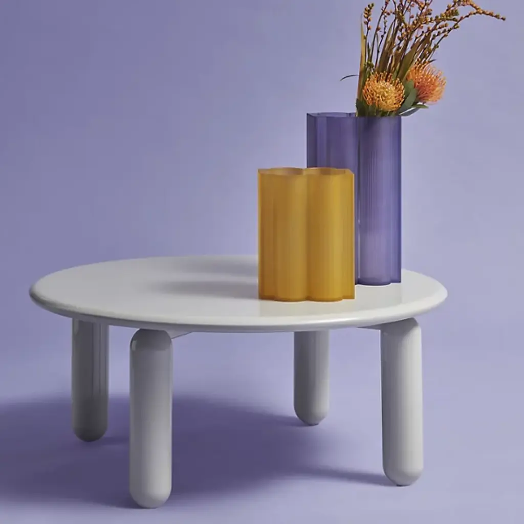 The Undique Mas Low Round Table from Kartell features cylindrical legs and a circular top that create a balanced composition anchoring living spaces with purpose. It brings Patricia Urquiola's postmodern vision to life. Its lower height makes it perfect for lounging areas and social settings. The polyester-lacquered construction ensures durability without compromising the table's fluid aesthetic. When paired with other pieces from the collection, it creates dynamic arrangements, fulfilling its role as both a functional surface and social catalyst.