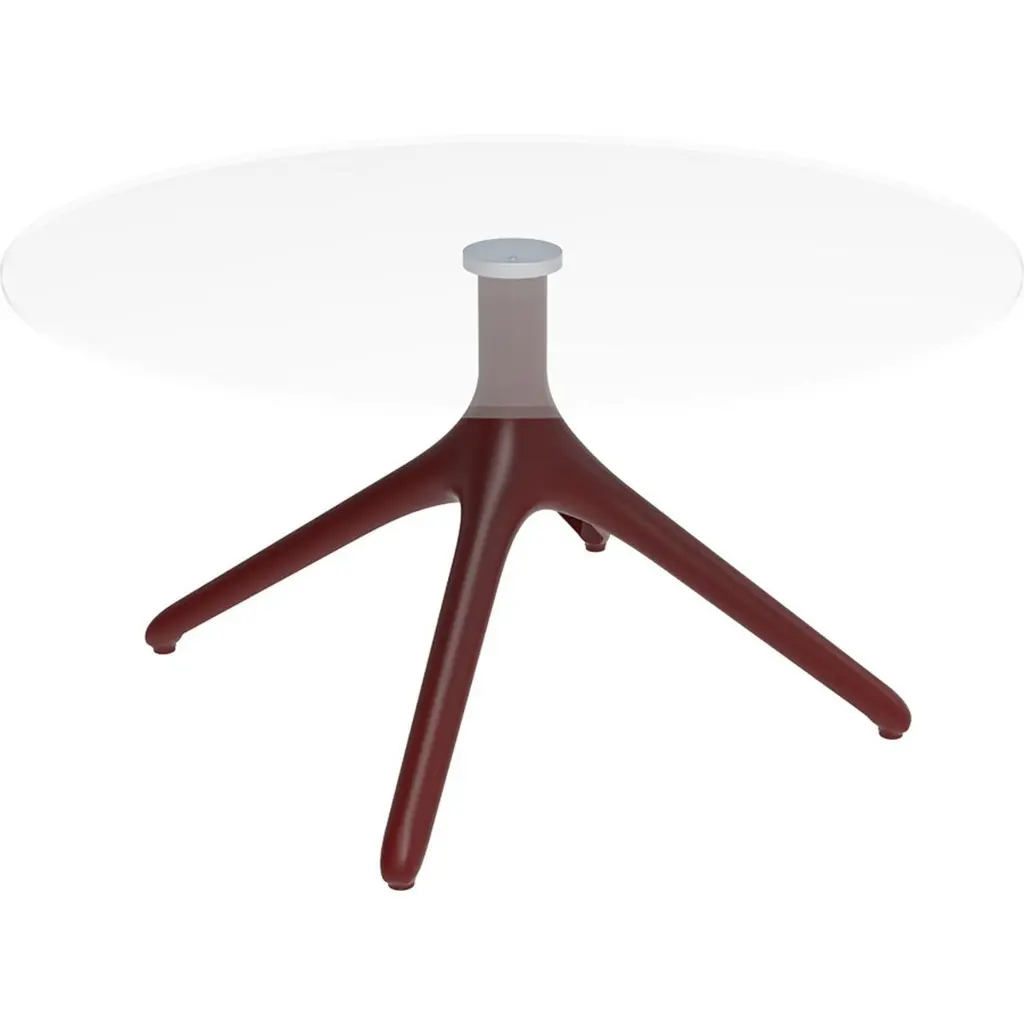 Uni burgundy table XL 50 by Mowee.Dimensions: D50 x H50 cm.Material: Aluminium, tempered glass.Weight: 8.8 kg.Also Available in different colours and finishes.A table designed to be as versatile as possible and can coexist with a variety of styles of chairs and contexts. Its organic and smooth shape gives it an elegant and delicate style. The structure works with both square and circular envelopes and can be stacked to occupy minimum space when not in use. A wide range of envelopes allows you to create the necessary combination for any interior design project, restaurant, cafeteria, terraces or hotels.Möwee is part of the work, effort and commitment of Gaviota, a leading company in the outdoor sector. It was set up as an independent venture to broaden horizons in the outdoor furniture world, with its own distinctive character and way of doing things. Freshness, simplicity, quality and design are at the heart of its DNA.