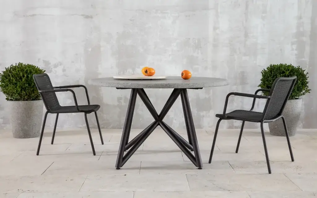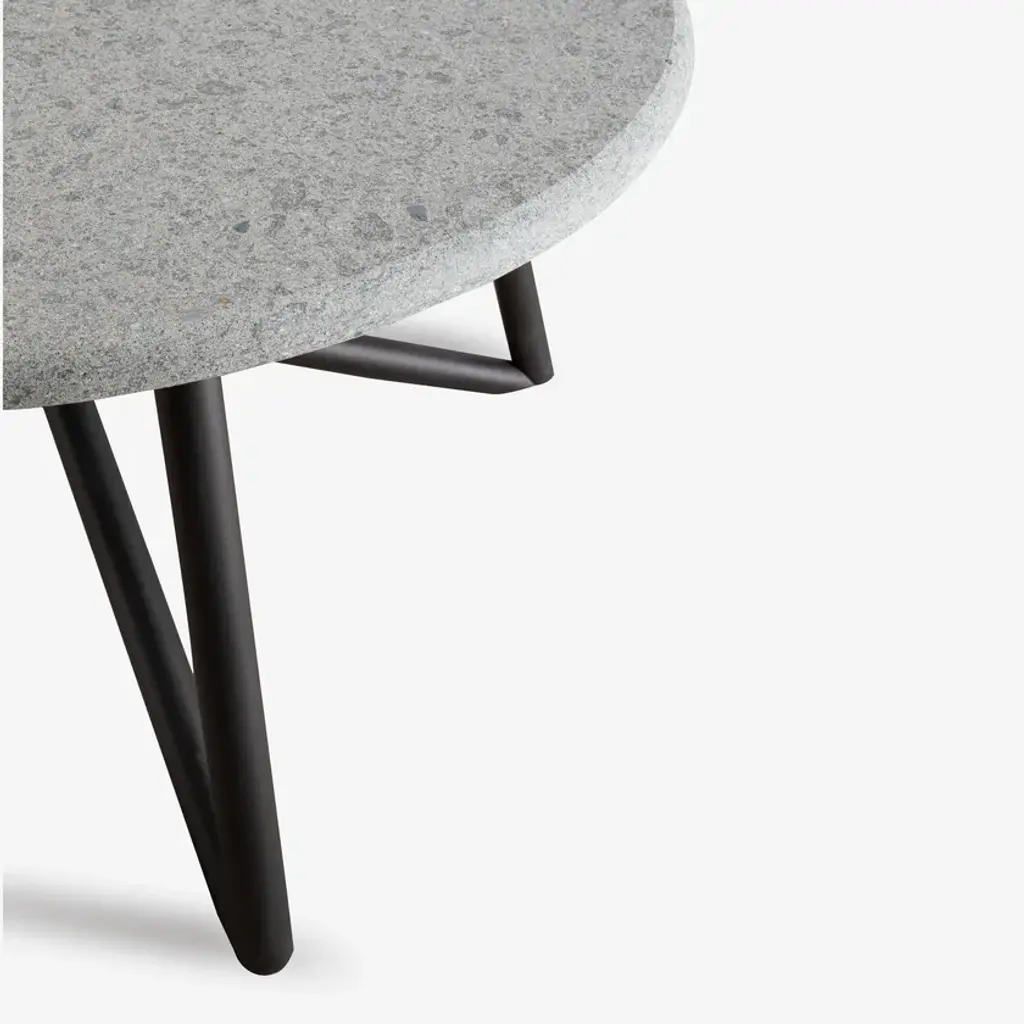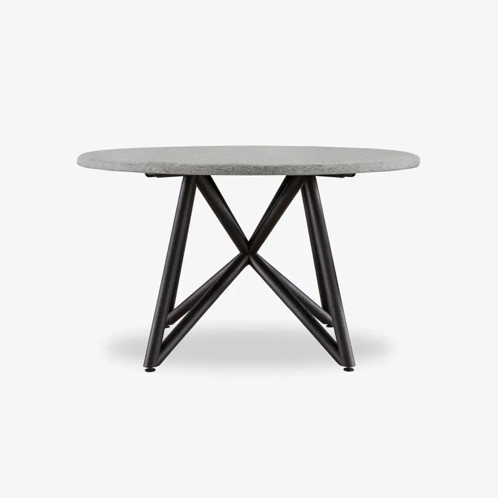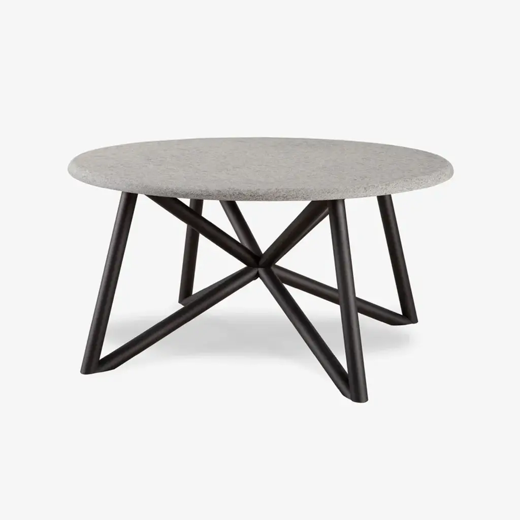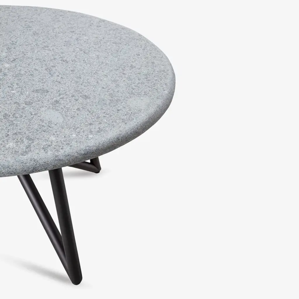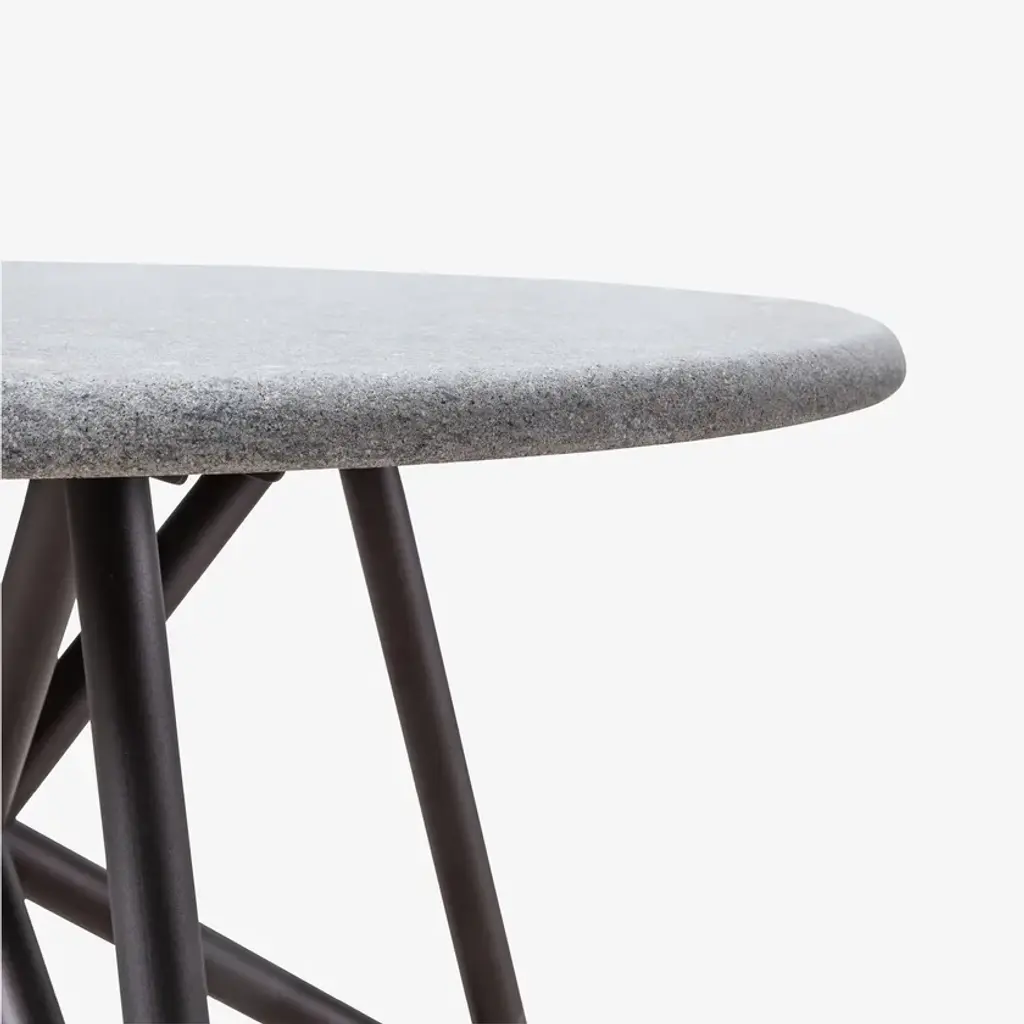 Uni is a round table without a central tray which combines harmoniously its forms to evoke a sense of perfect balance and harmony. The top is available in peperino, travertine, or marble, while the base is manufactured in white iron in the marble version or painted in a warm brown hue for versions with either peperino or travertine tops. Simplicity and refinement come together in a unique piece, perfect for any setting.Main table top: circular top Table base: Intertwined galvanized steel tubes, dark brown, powder-coated with thermosetting powders for outdoor use.Stone: Pepperino, smoothed natural stone treated with stain and rain-resistant products.Details: the edge has a rounded finish.Cutting and welding with state-of-the-art numerically controlled work tools.