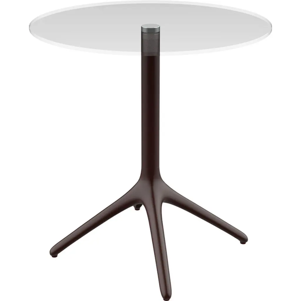Uni grey table 73 by Mowee.Dimensions: D45.5 x H73 cm.Material: Aluminium, tempered glasWeight: 5.5 kgAlso Available in different colours and finishes. Collapsable version available. A table designed to be as versatile as possible and can coexist with a variety of styles of chairs and contexts. Its organic and smooth shape gives it an elegant and delicate style. The structure works with both square and circular envelopes and can be stacked to occupy minimum space when not in use. A wide range of envelopes allows you to create the necessary combination for any interior design project, restaurant, cafeteria, terraces or hotels.Möwee is part of the work, effort and commitment of Gaviota, a leading company in the outdoor sector. It was set up as an independent venture to broaden horizons in the outdoor furniture world, with its own distinctive character and way of doing things. Freshness, simplicity, quality and design are at the heart of its DNA.