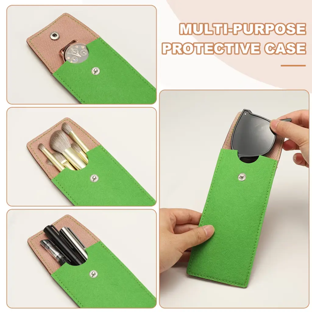 This glasses bag is made of soft felt that won't scratch lenses. It's meticulously crafted with tightly stitched edges. Its slim and lightweight design makes it easy to carry around. It also features shockproof protection to prevent lenses from bending or breaking. Besides storing glasses, this versatile bag can also hold a variety of small items, such as watches, jewelry, ID cards, and keys. It's a thoughtful gift for friends or family who wear glasses or sunglasses.