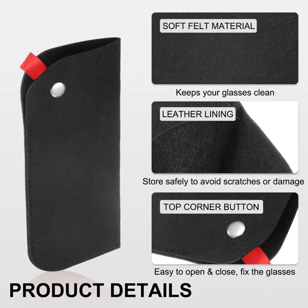 This glasses bag is made of soft felt that won't scratch lenses. It's meticulously crafted with tightly stitched edges. Its slim and lightweight design makes it easy to carry around. It also features shockproof protection to prevent lenses from bending or breaking. Besides storing glasses, this versatile bag can also hold a variety of small items, such as watches, jewelry, ID cards, and keys. It's a thoughtful gift for friends or family who wear glasses or sunglasses.