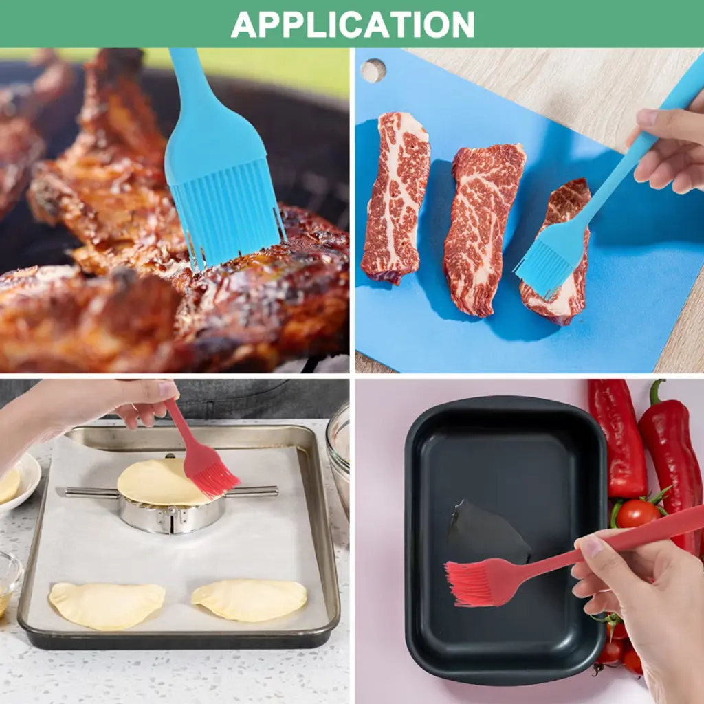The silicone pastry cooking brushes are versatile and can be used in ovens, microwaves, dishwashers, and freezers. They are safe for BBQ, baking, and frying in a pan. Made from flexible silicone, they withstand temperatures from -30℃ to 230℃. The brush head is securely attached to the handle for a seamless connection, preventing any loosening or residue collection. Ensure to wash with warm water before use and store in a dry, cool place.