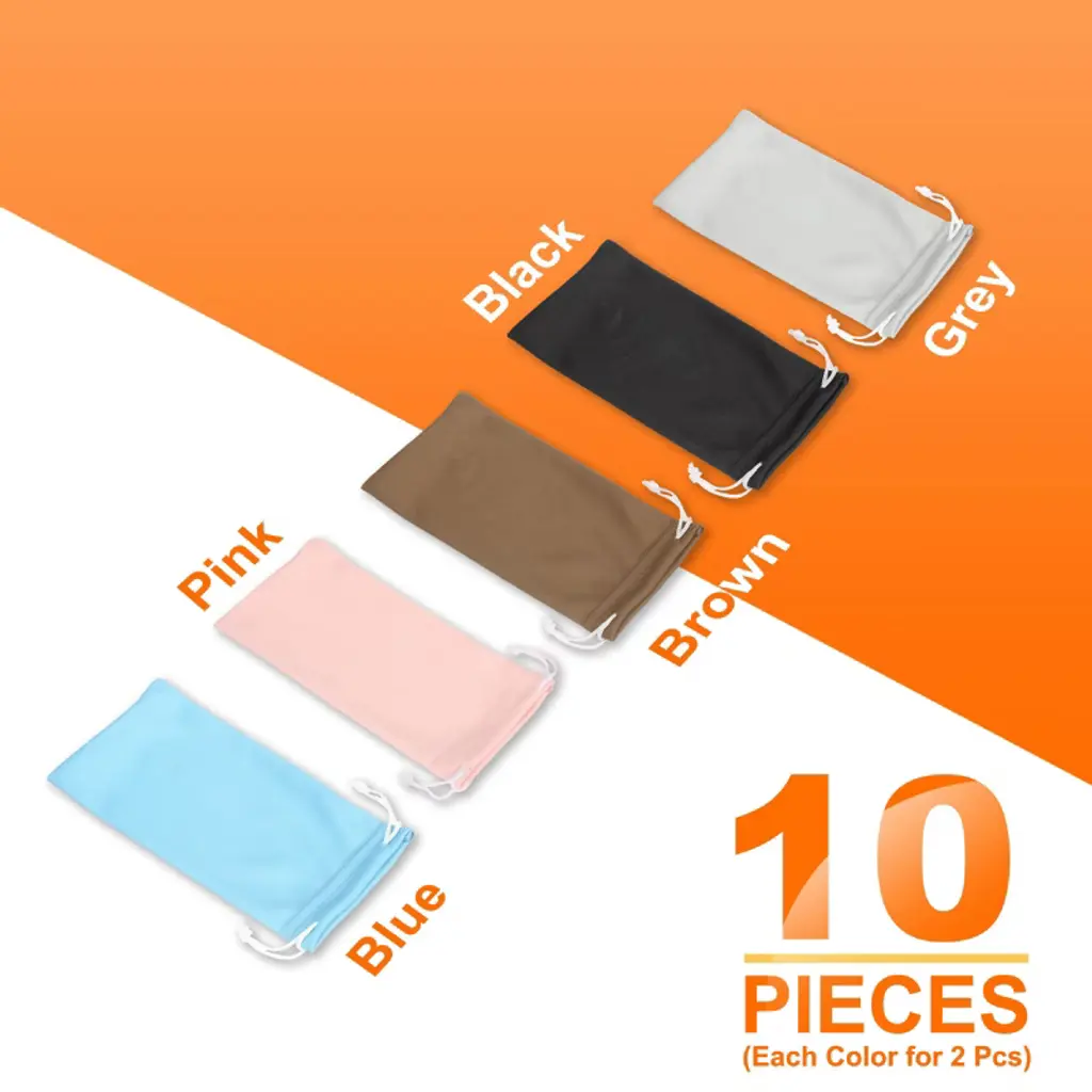 Unique Bargains Microfiber Soft Portable Storage Scratch-resistant Eyeglasses Bag 10 Pcs Black, Brown, Grey, Pink, Blue