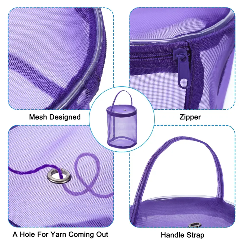 Unique Bargains Portable Crochet Knitting Craft Mesh Yarn Storage Bag 2 Pcs Purple