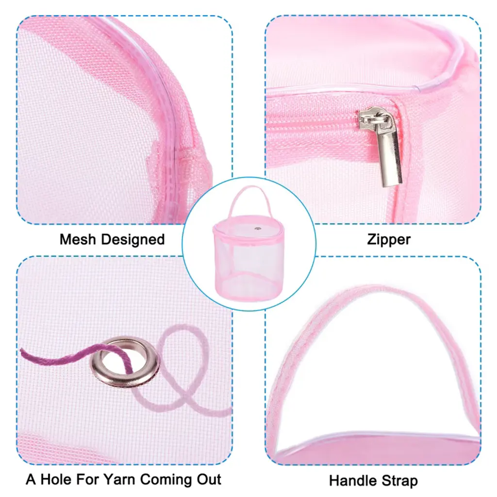 Unique Bargains Portable Crochet Knitting Sewing Craft Mesh Yarn Storage Bags 2 Pcs Pink