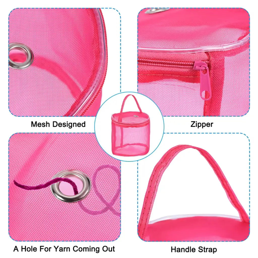 This yarn storage bag is designed for various knitting and crochet projects. It keeps your yarn organized and protected, making it ideal for use at home, during crafting classes, or while traveling. The bag features a top hole that allows easy yarn access while working, preventing tangling and ensuring a smooth knitting experience. Additionally, it includes a handle for convenient carrying or hanging on your wrist, allowing uninterrupted crafting. The foldable design makes it easy to store when not in use, taking up minimal space and keeping your area tidy. For cleaning, spot clean with a mild detergent and water, ensuring the yarn is dry before storing.
