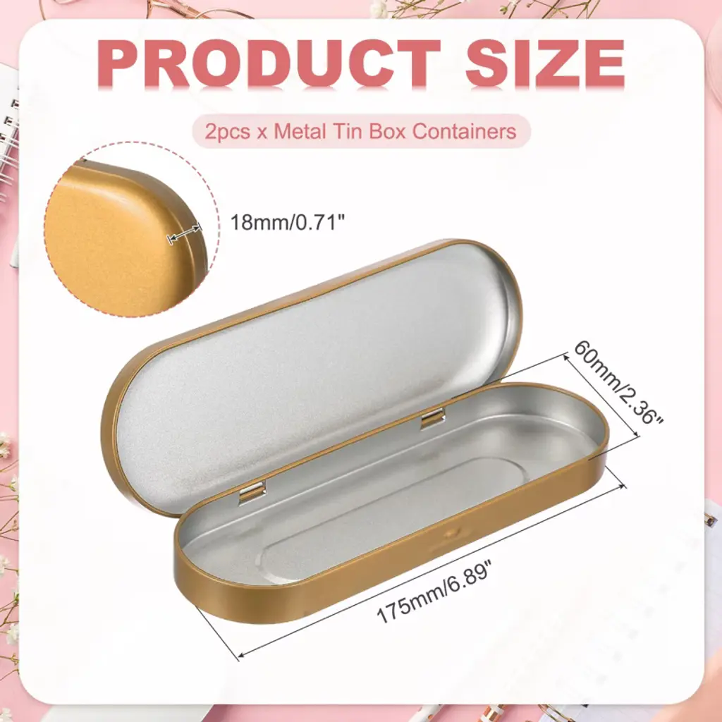 Unique Bargains Portable Rectangular Makeup Brushes Metal Hinged Tins Box 2 Pcs Champagne Gold
