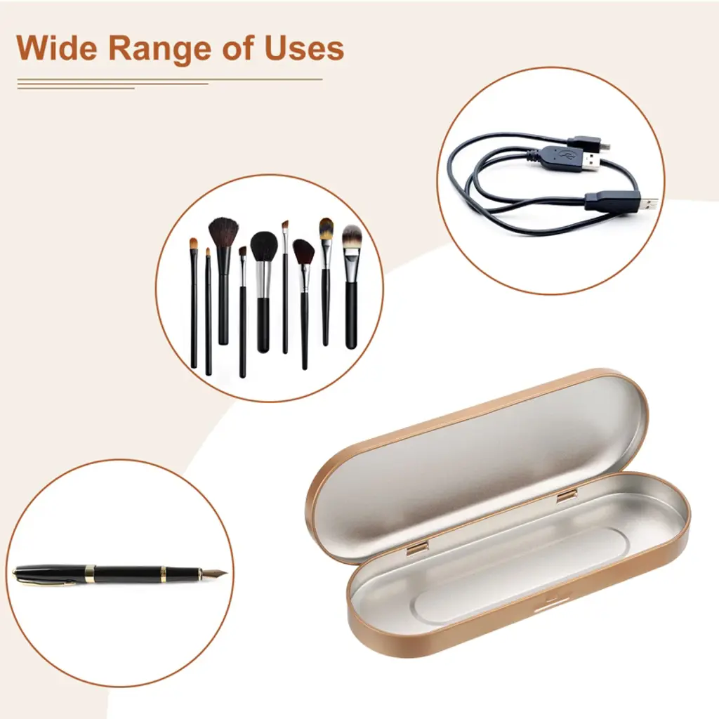 Unique Bargains Portable Rectangular Pen Makeup Brushes Metal Hinged Tins Box Golden