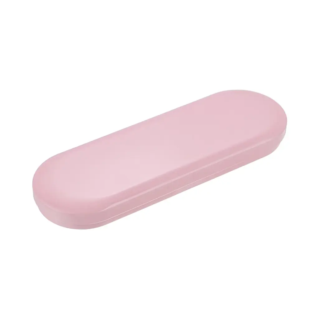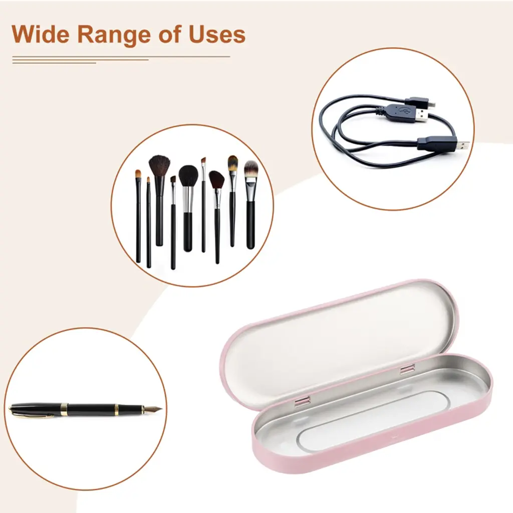 Unique Bargains Portable Rectangular Pen Makeup Brushes Metal Hinged Tins Box Pink