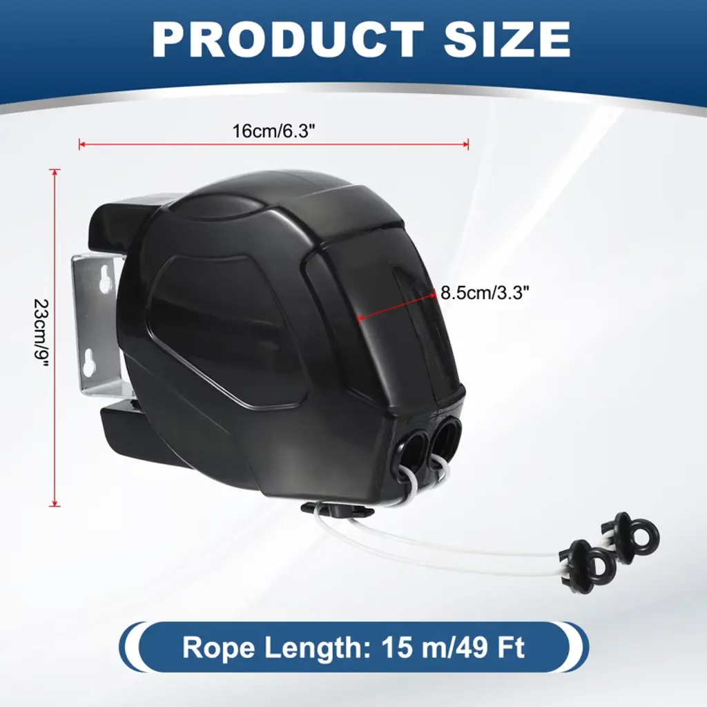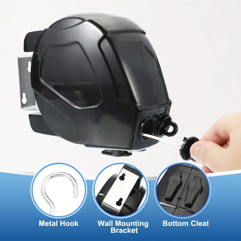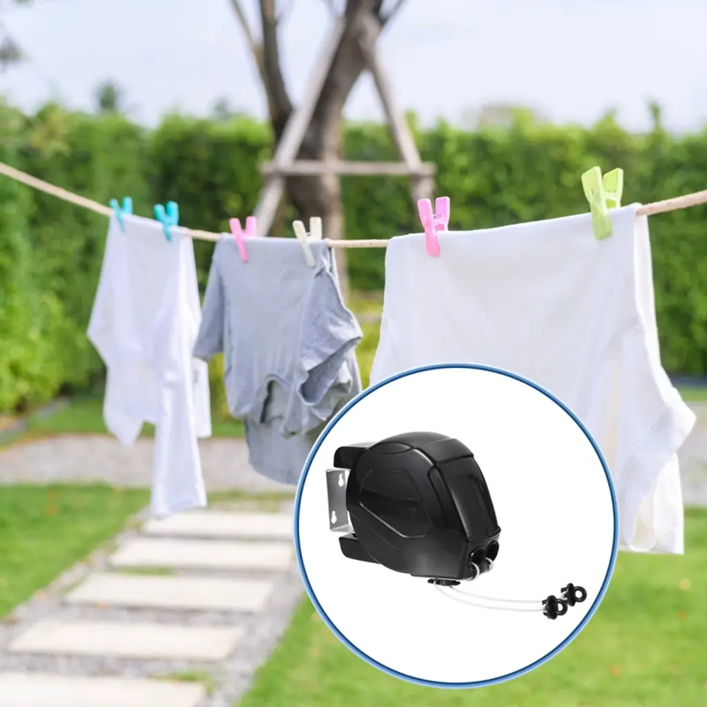 Unique Bargains Portable Retractable Wall-mounted Outdoor Clotheslines Black
