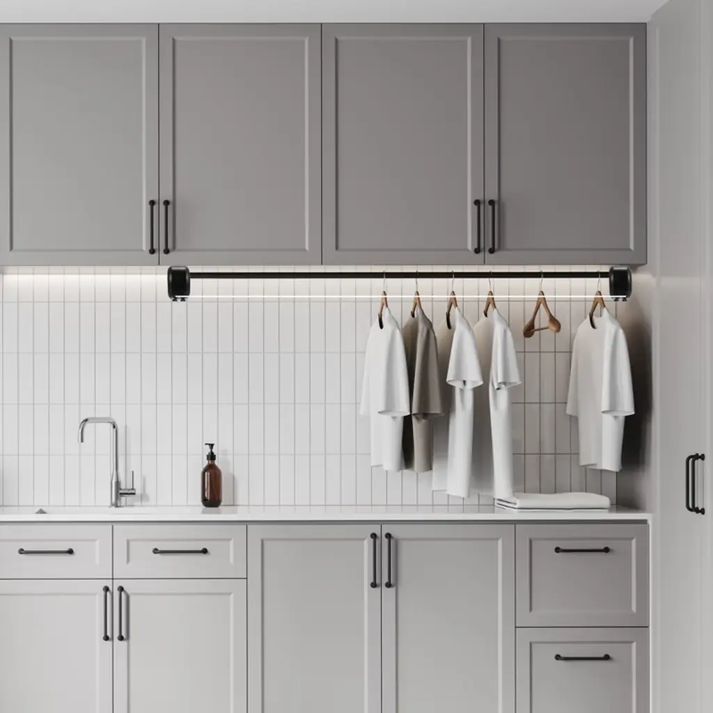 Made of durable PVC, this retractable clothesline is abrasion-resistant and break-resistant, ensuring long-lasting durability. Its compact design makes it easy to carry and store. Its retractable design ensures it doesn't take up too much space when not in use. It's suitable for use in various locations, including hotels, terraces, balconies, bathrooms, and camping.