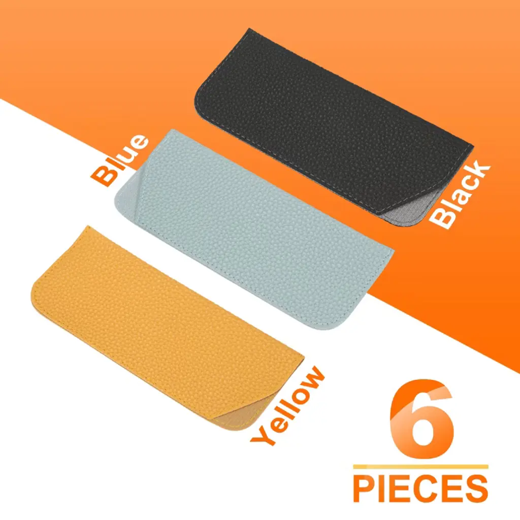 Unique Bargains Pu Leather Portable Storage Scratch-resistant Eyeglasses Bag 6 Pcs Black, Blue, Yellow